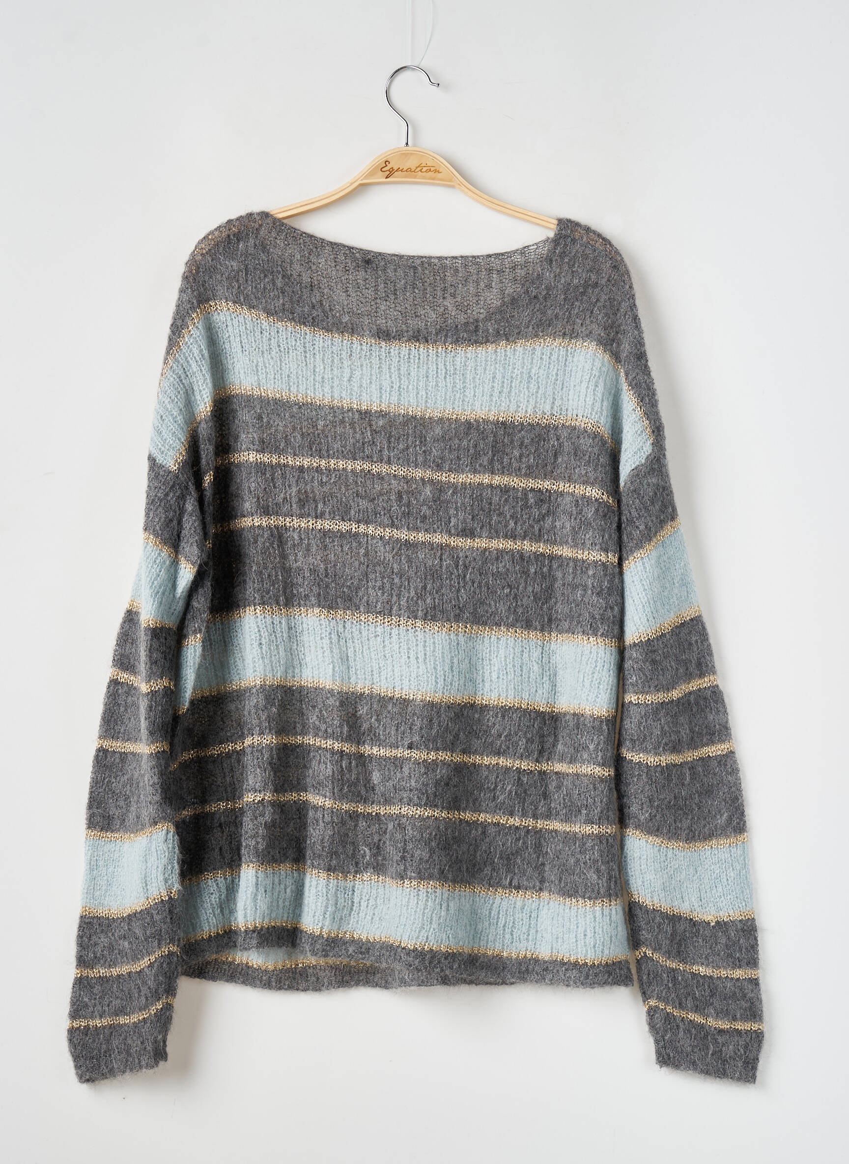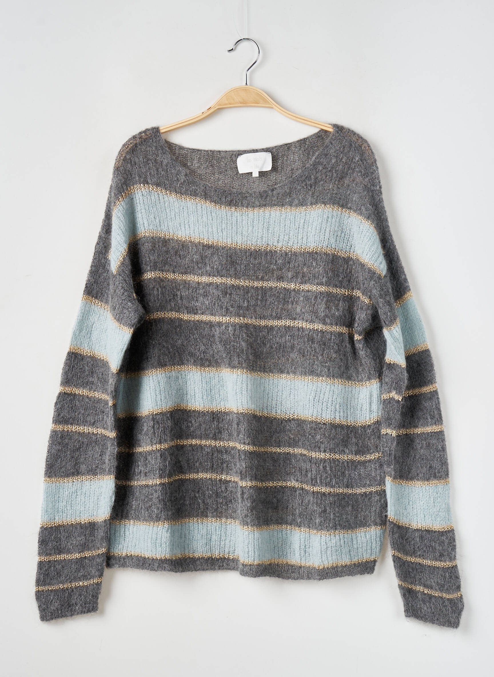 Profitez d’une belle opportunité d’acquérir un pull LES TRICOTS DE LÉA à prix réduit, parfait pour apporter une touche de douceur et de style à votre garde-robe sans vous ruiner. Ce modèle affiche un joli jeu de rayures horizontales dans des tons gris chiné, bleu pâle et touches dorées, pour une allure à la fois décontractée et lumineuse. Sa coupe confortable et son esprit casual en font une pièce facile à porter au quotidien, idéale pour réchauffer vos tenues tout en restant tendance, le tout à un prix très avantageux.