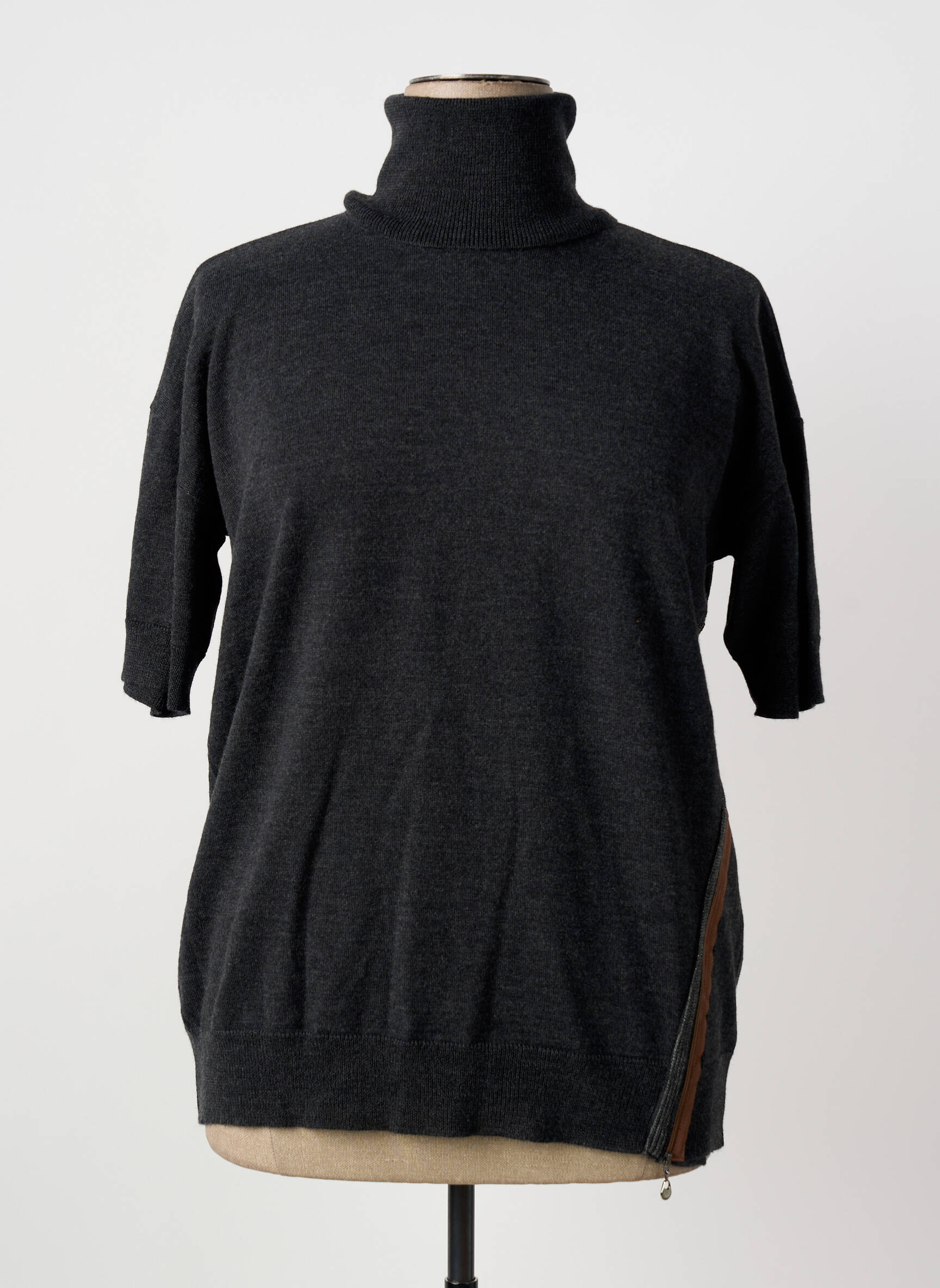 Profitez d’une occasion exceptionnelle pour vous offrir ce pull MARIA BELLENTANI, parfait mélange d’élégance et de tendance à prix malin. Ce modèle féminin séduit par sa coupe ample à manches courtes et son col montant qui offre un style raffiné sans effort, tandis que la fermeture zippée sur le côté ajoute une touche de modernité. Indispensable pour composer vos looks sobres et chics au meilleur prix, il deviendra vite votre allié pour des journées confortables sans compromis sur le style.