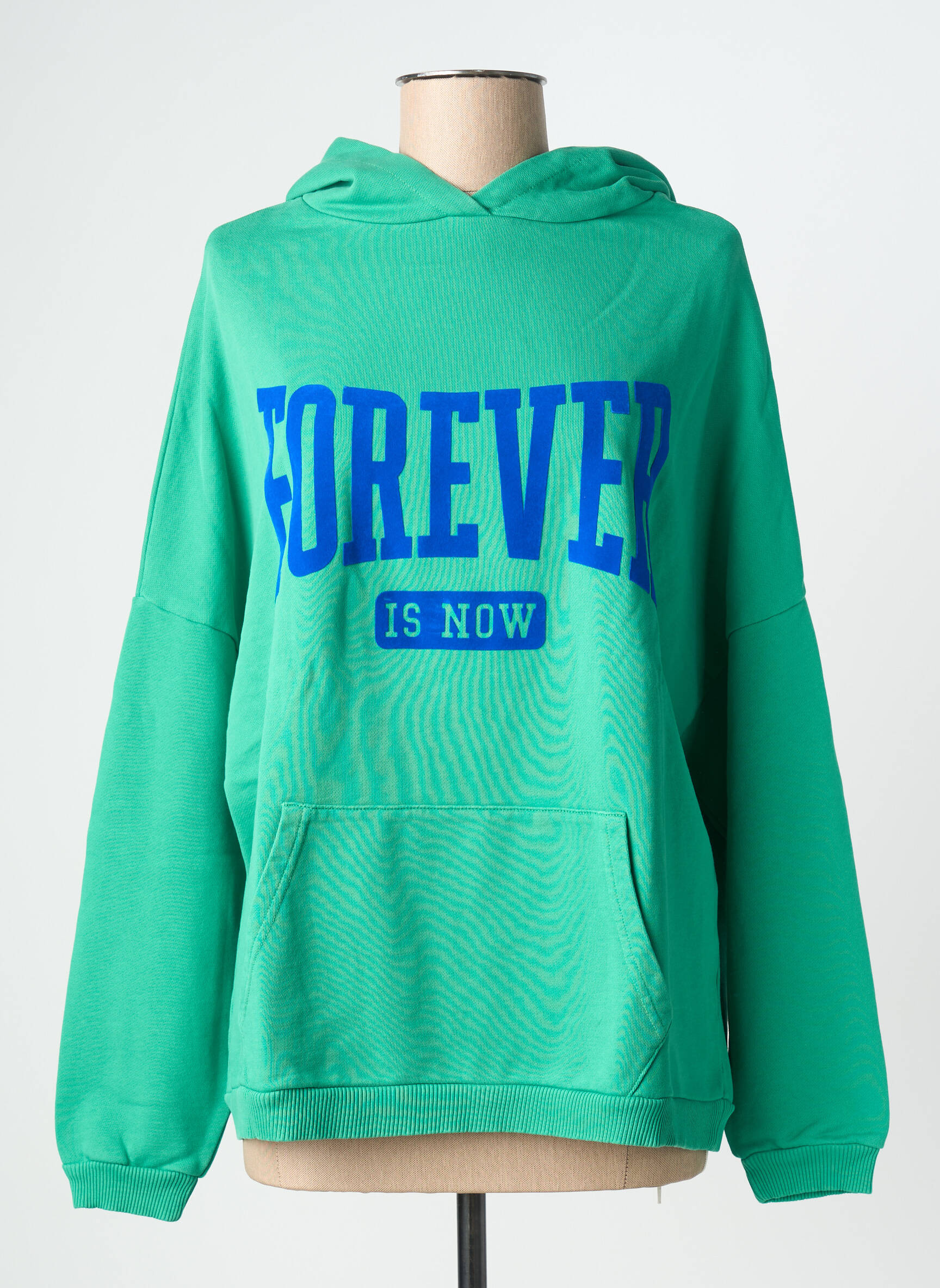 Optez pour un look tendance à prix malin avec ce pull NINE TEES pour femme, idéal pour ajouter une touche urbaine à votre dressing sans vous ruiner. Son coloris vert éclatant rehaussé d’un large motif "FOREVER IS NOW" offre une allure moderne et décontractée, tandis que la capuche et la poche kangourou assurent un confort parfait au quotidien. C’est le bon plan à ne pas manquer pour être stylée tout en faisant des économies sur les grandes marques.