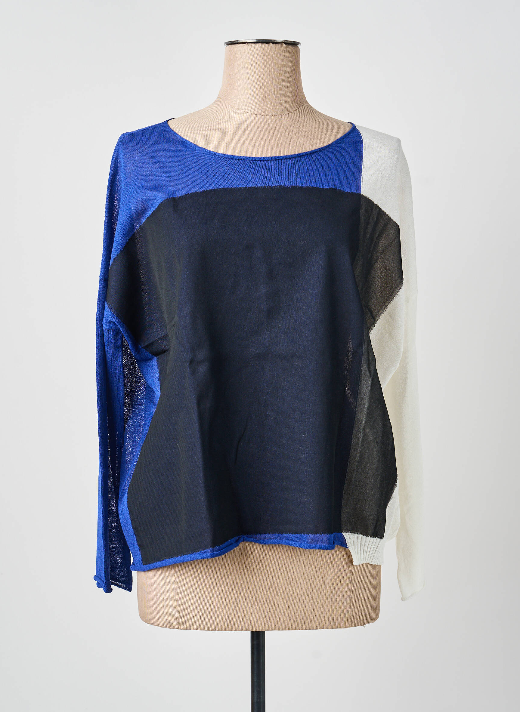 Craquez pour ce pull femme de la marque PIER ANTONIO GASPARI à prix mini, une pièce ultra-tendance qui offre une vraie économie par rapport aux boutiques classiques. Son design graphique, mêlant harmonieusement le bleu intense, le noir profond et le blanc éclatant, donne du caractère à votre tenue tout en restant facile à porter au quotidien. La coupe légèrement oversize et l’originalité de sa construction en font un choix idéal pour dynamiser votre dressing sans vous ruiner.