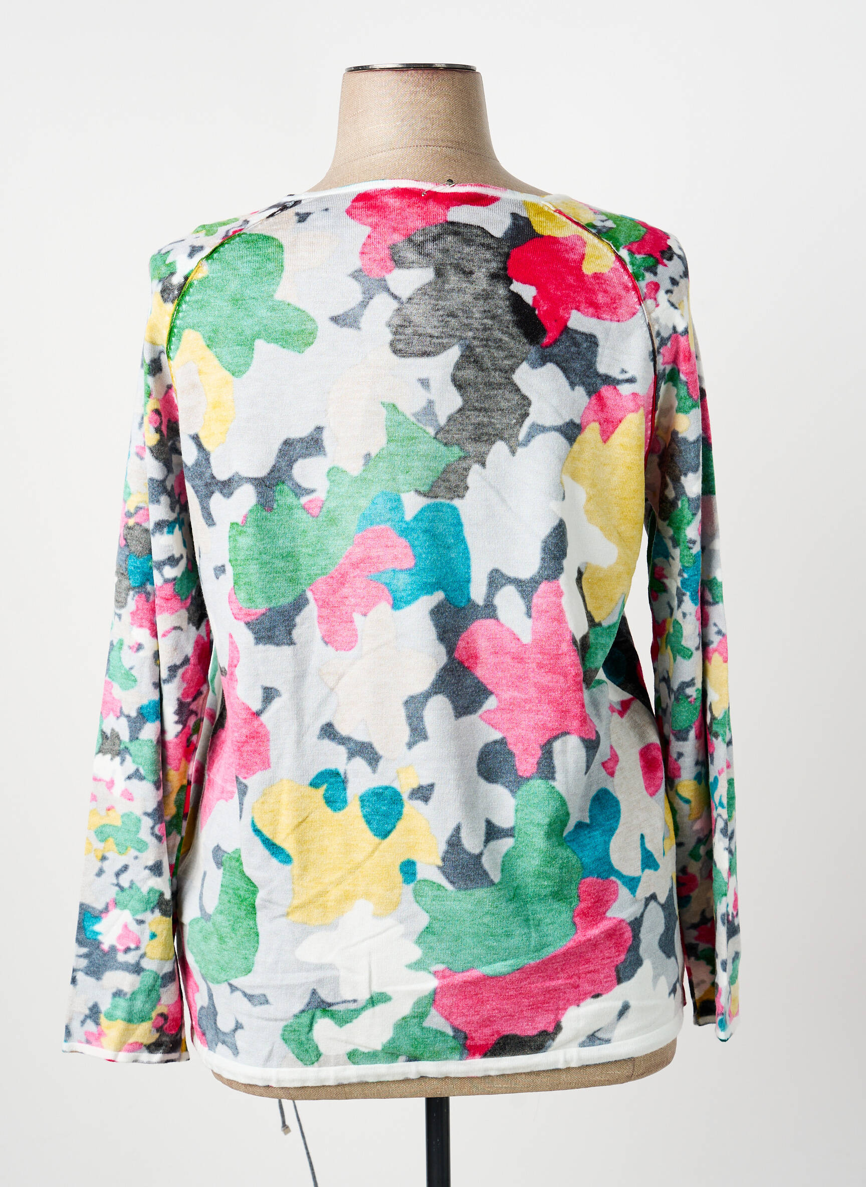 Ce pull coloré se porte facilement avec un jean slim brut pour un look casual ou avec un pantalon blanc pour mettre en valeur la vivacité de ses motifs. Pour une allure plus élégante, vous pouvez le glisser sur une jupe unie et accessoiriser avec un sac sobre et des baskets ou des boots. Il se marie aussi parfaitement avec une veste en jean ou un trench léger lors des journées fraîches, tout en laissant la part belle à son imprimé original.