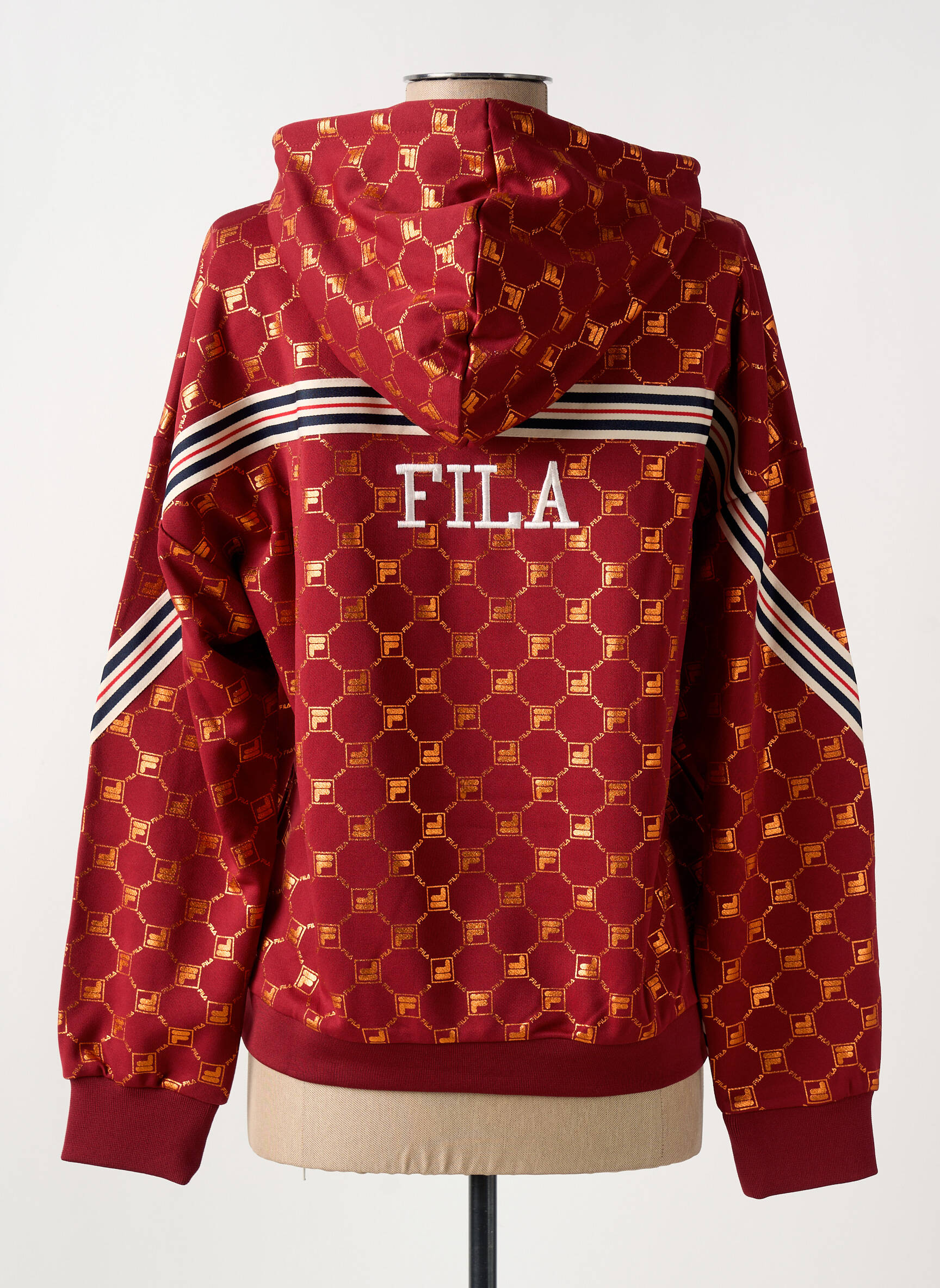 Profitez d’une vraie bonne affaire avec ce sweat à capuche FILA pour femme, qui allie style unique et prix mini. Son imprimé géométrique bordeaux et doré apporte une touche tendance et dynamique, tandis que les bandes contrastées sur les manches et le logo discret sur la poitrine soulignent l’esprit sportif de la marque. Parfait pour se démarquer sans se ruiner, ce sweat vous offre le look urbain incontournable à petit prix.