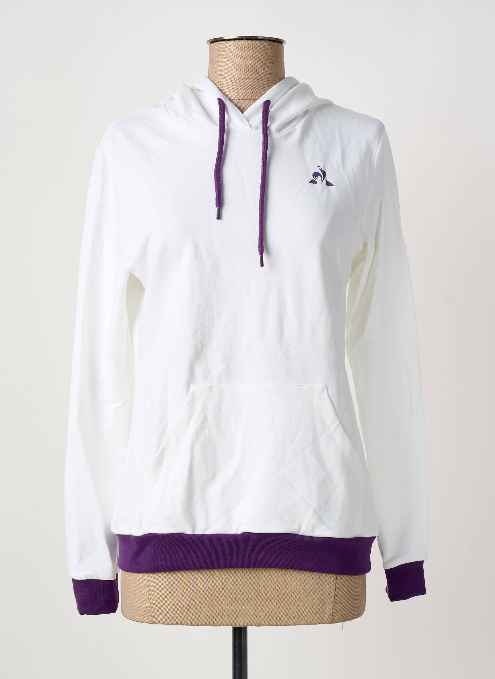 Profitez d'un bon plan mode avec ce sweat-shirt à capuche Le Coq Sportif pour femme, parfait pour celles qui veulent allier style et petits prix. Sa coupe décontractée et féminine est mise en valeur par une finition soignée, tandis que sa couleur blanche lumineuse est sublimée par des touches violettes contrastantes sur la capuche, les poignets et le bas. Pratique grâce à sa grande poche frontale, ce sweat vous offre une allure sportive et tendance à prix réduit, idéal pour celles qui aiment s'offrir de la qualité sans se ruiner.