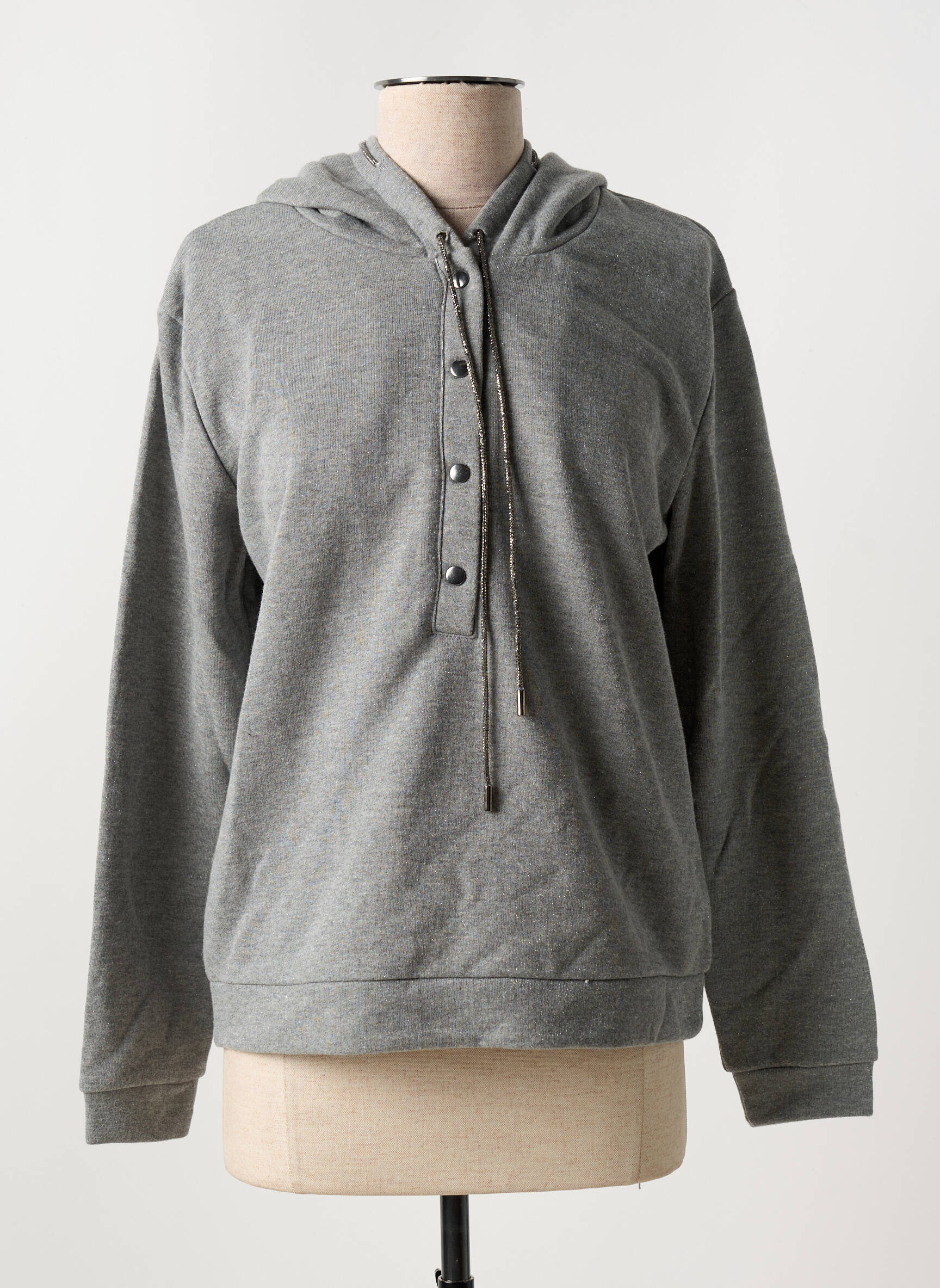 Sweat-shirt À Capuche Suza Gris Manches Longues