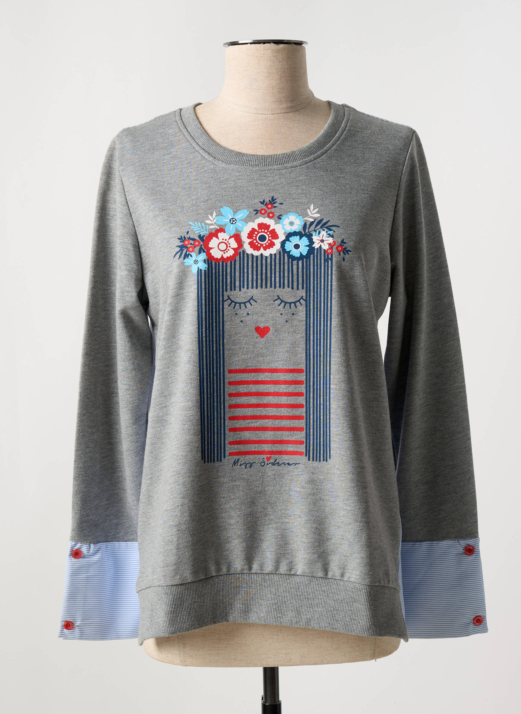 Profitez d’une offre exceptionnelle sur ce sweat-shirt chic de la marque MISS SIDECAR, pensé pour allier style et confort au quotidien sans vous ruiner. Ce modèle séduit par son motif graphique original sur le devant, illustrant un visage orné d’une couronne de fleurs colorées pour une touche féminine et joyeuse. La base et les manches longues rehaussées de détails contrastants à rayures apportent une note d’originalité supplémentaire tout en soulignant le soin apporté à la finition. Un vrai bon plan pour s’offrir un vêtement tendance à prix tout doux.
