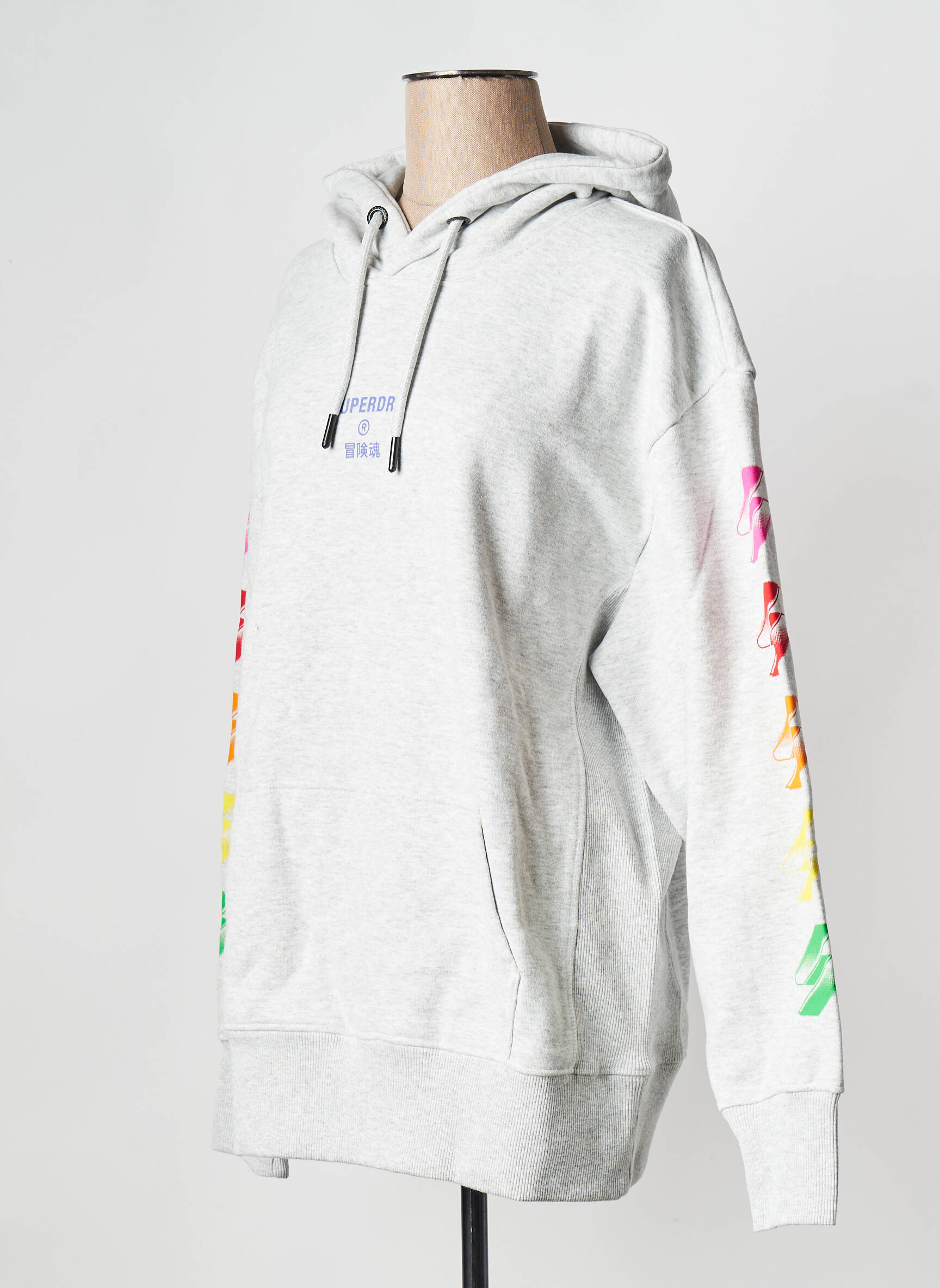 Profitez d’un super rapport qualité-prix avec ce sweat à capuche pour femme signé SUPERDRY, une pièce tendance à petit prix qui allie confort et style. Son coloris gris clair s’agrémente de motifs colorés sur les manches pour une touche de pep’s, tandis que sa coupe décontractée et sa poche kangourou en font un incontournable du vestiaire casual, idéal pour celles qui veulent afficher une allure dynamique sans se ruiner.