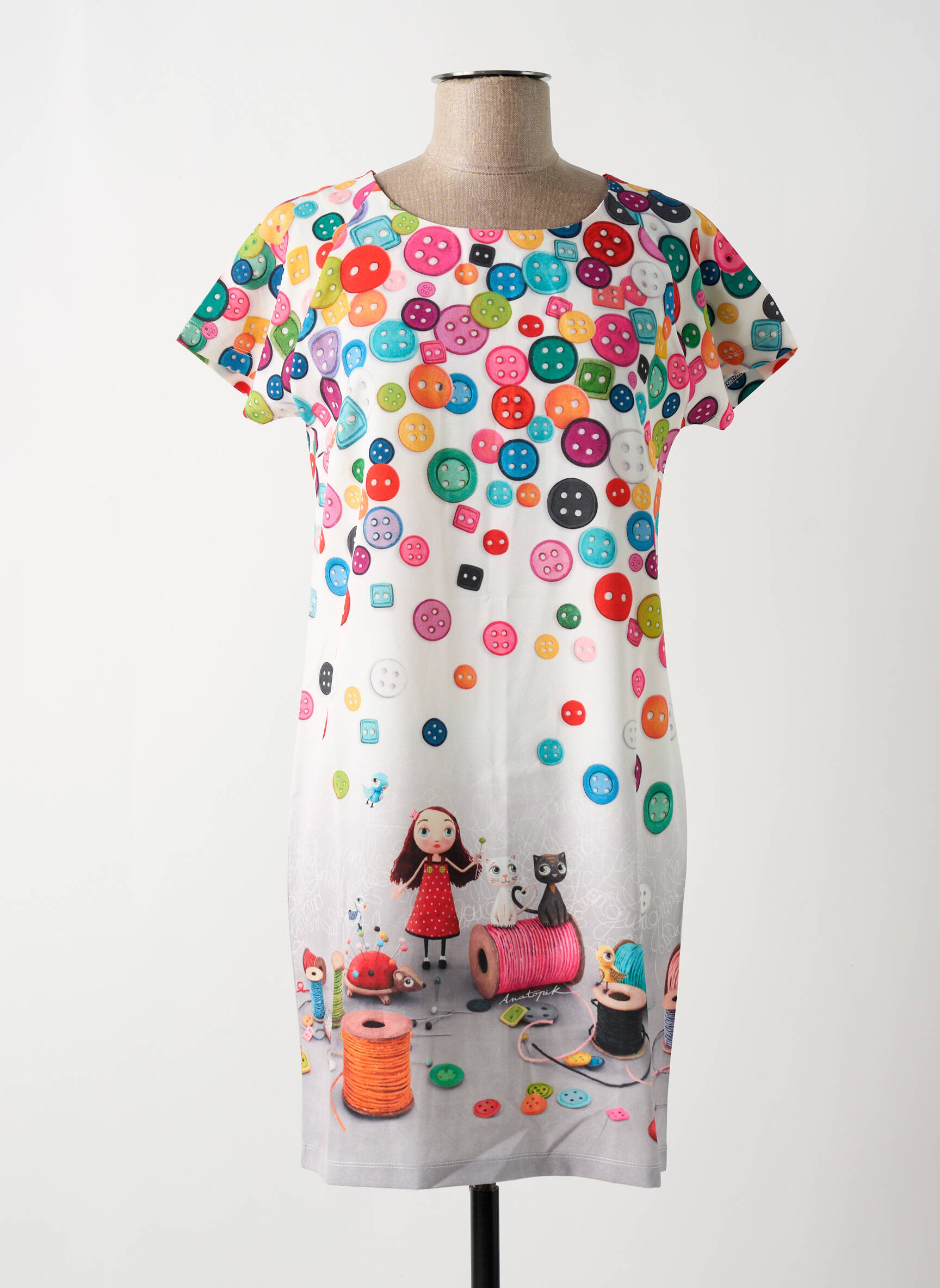 Robe Courte Anatopik Blanc Manches Courtes