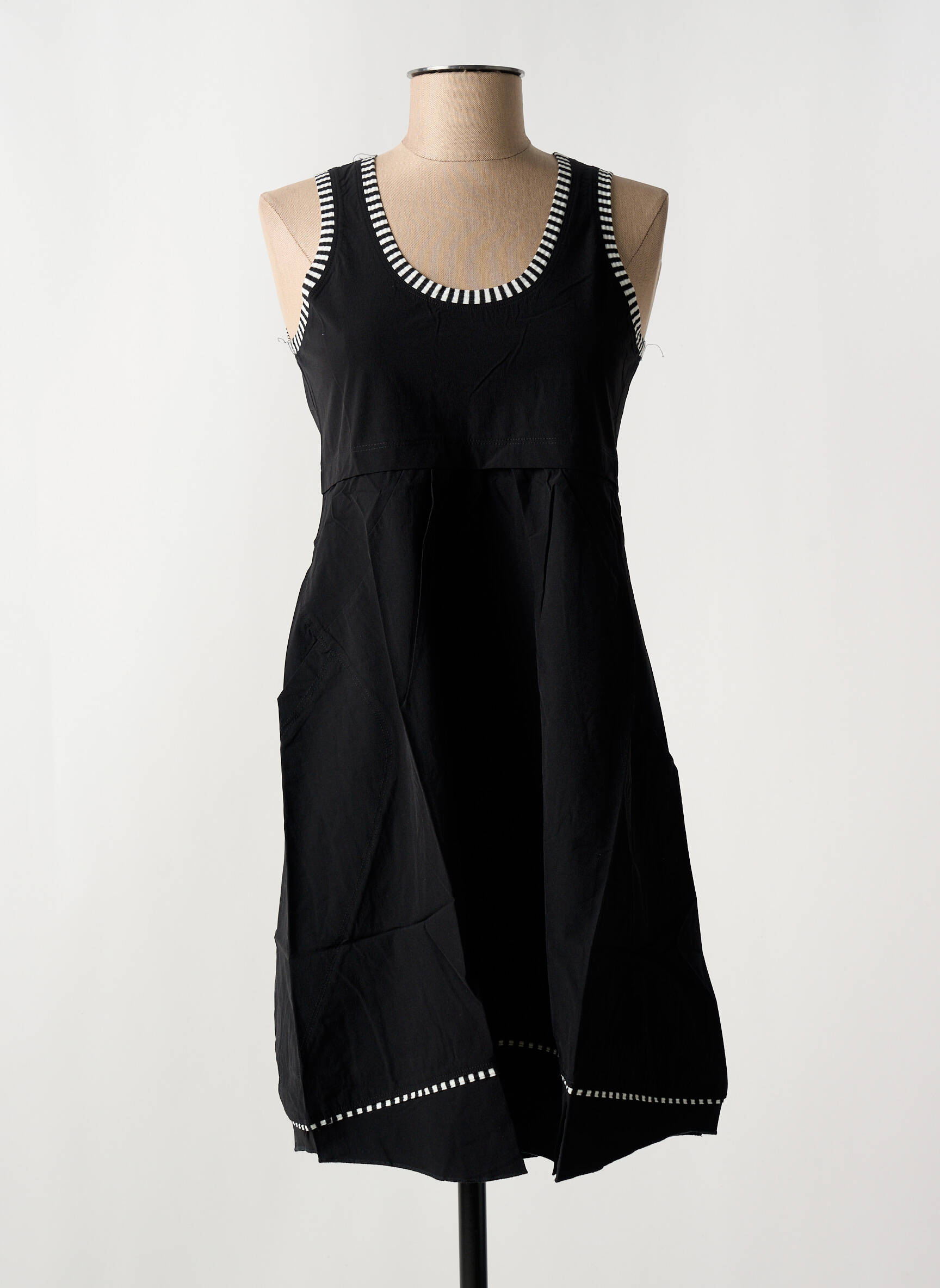 Profitez d’un bon plan irrésistible avec cette robe courte signée ARELINE, une pièce noire élégante twistée par de jolis détails contrastés au niveau de l’encolure, des emmanchures et à la base, qui lui donnent une allure moderne et originale. Sa coupe légèrement évasée assure un confort optimal tout en sublimant la silhouette, parfait pour une tenue chic à petit prix et sans compromis sur le style.