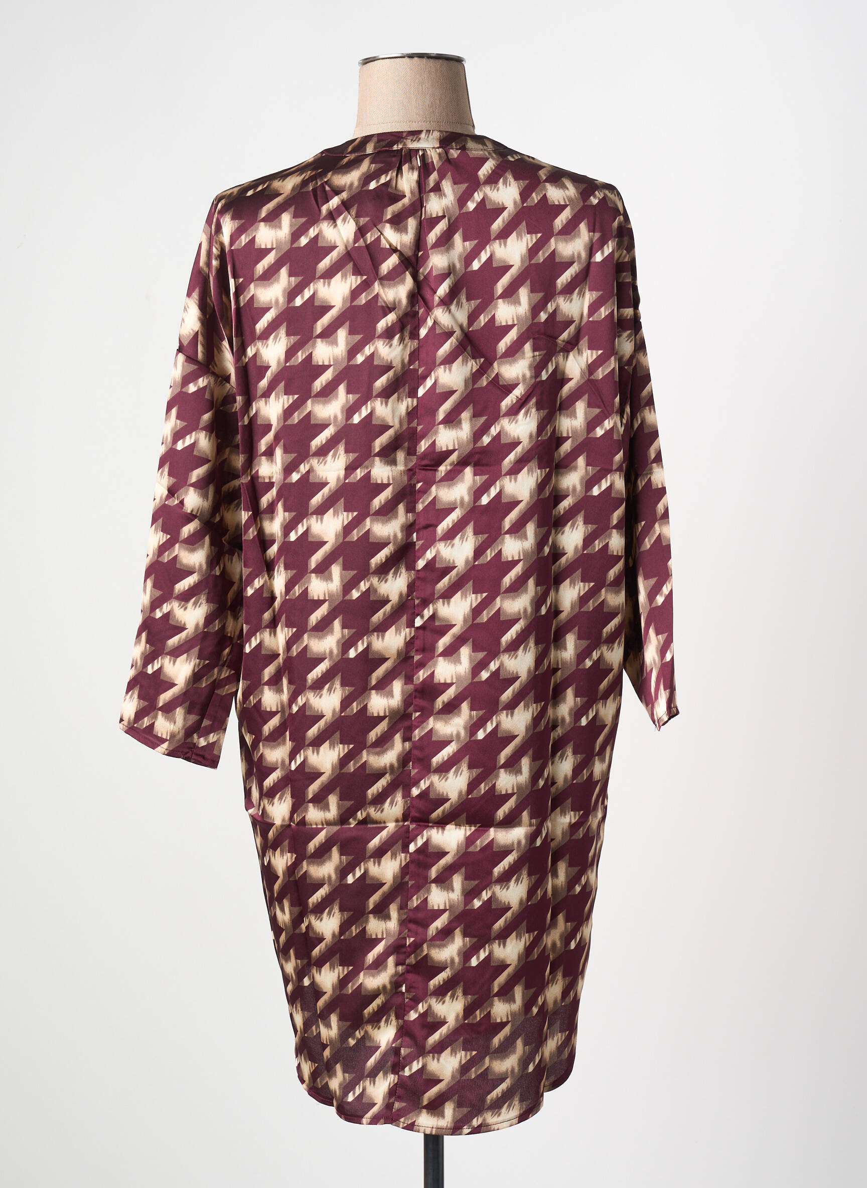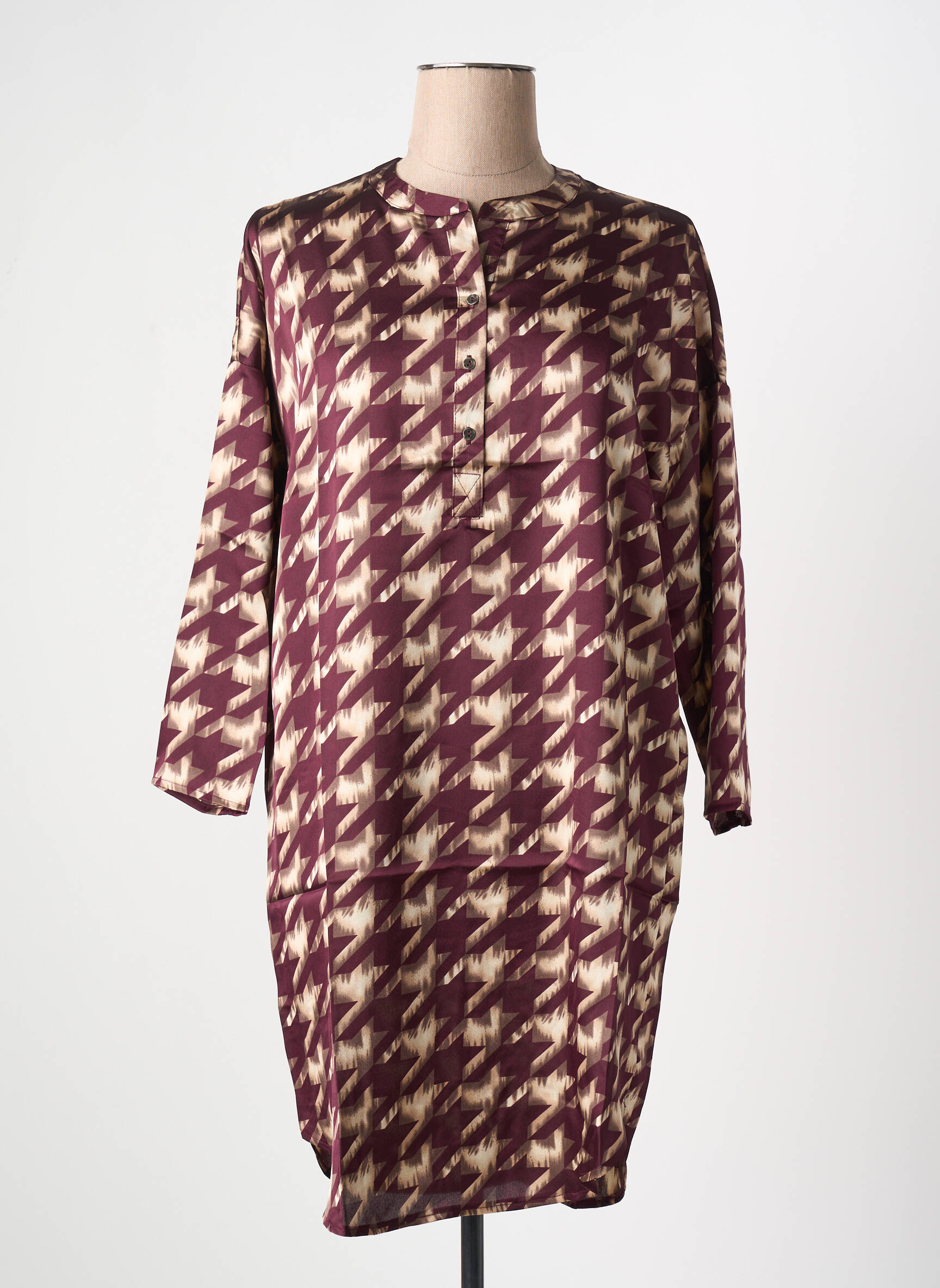 Craquez pour cette robe courte ARELINE à petit prix, parfaite pour apporter une touche graphique et tendance à votre dressing sans vous ruiner. Son imprimé pied-de-poule revisité dans des tons bordeaux et beige donne du caractère à votre silhouette, tandis que sa coupe droite et ses manches trois-quarts offrent un style à la fois décontracté et raffiné, idéal aussi bien pour le quotidien que pour vos sorties. Voilà l’occasion rêvée de profiter d’une robe originale à prix déstocké.