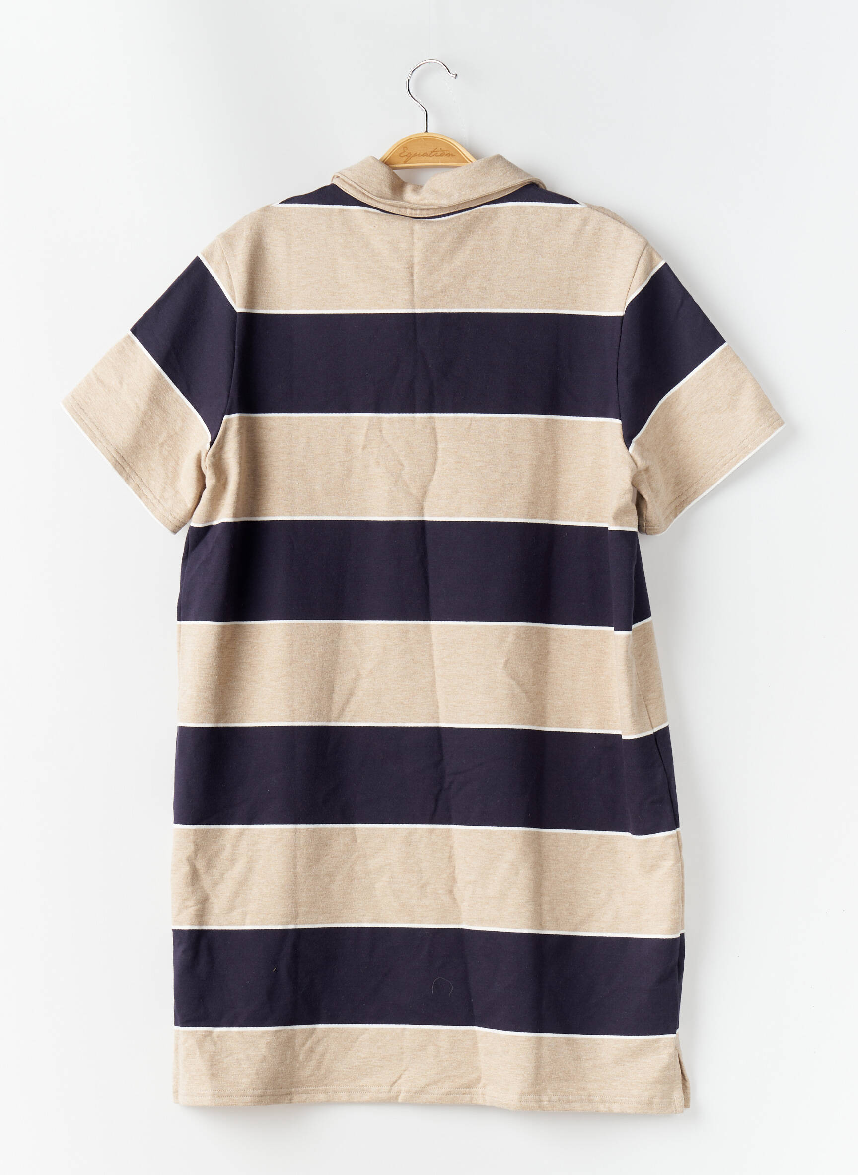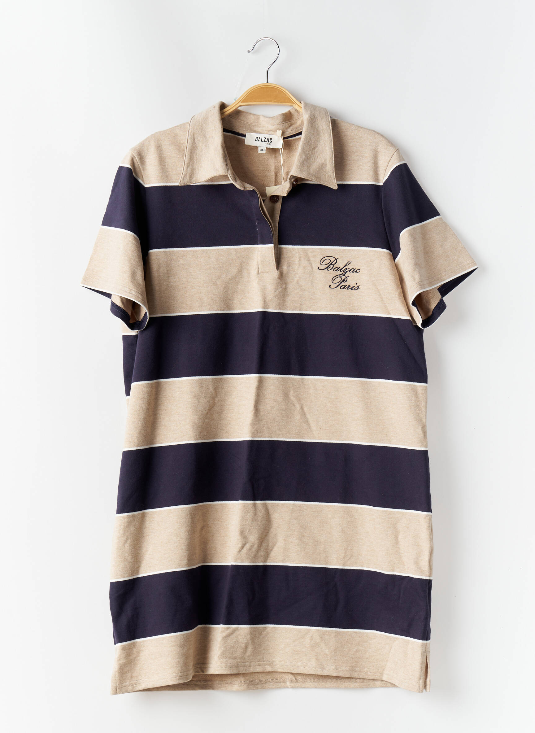 Craquez pour cette robe courte BALZAC à petit prix, un véritable bon plan pour un look tendance et décontracté sans se ruiner. Son motif à larges rayures beige et bleu marine apporte une touche sport chic, tandis que le col polo et les manches courtes soulignent un style à la fois élégant et facile à porter au quotidien. Profitez de l'opportunité de vous offrir une pièce de marque à prix malin, idéale pour renouveler votre garde-robe sans compromis sur la qualité.