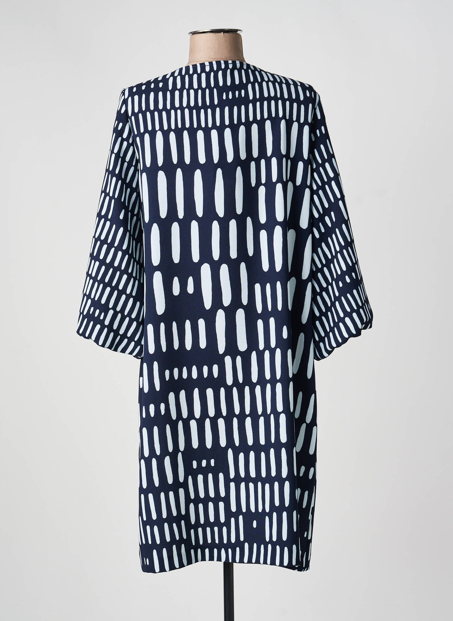 Profitez d’un bon plan avec cette robe courte signée CAROLINE BISS, parfaite pour apporter une touche graphique et moderne à votre garde-robe sans vous ruiner. Sa coupe fluide et son imprimé original à pois allongés sur fond bleu marine créent un look à la fois décontracté et élégant, idéal pour toutes les occasions, tout en restant à prix mini. C’est l’option incontournable pour se faire plaisir avec une pièce de créateur sans dépasser son budget.