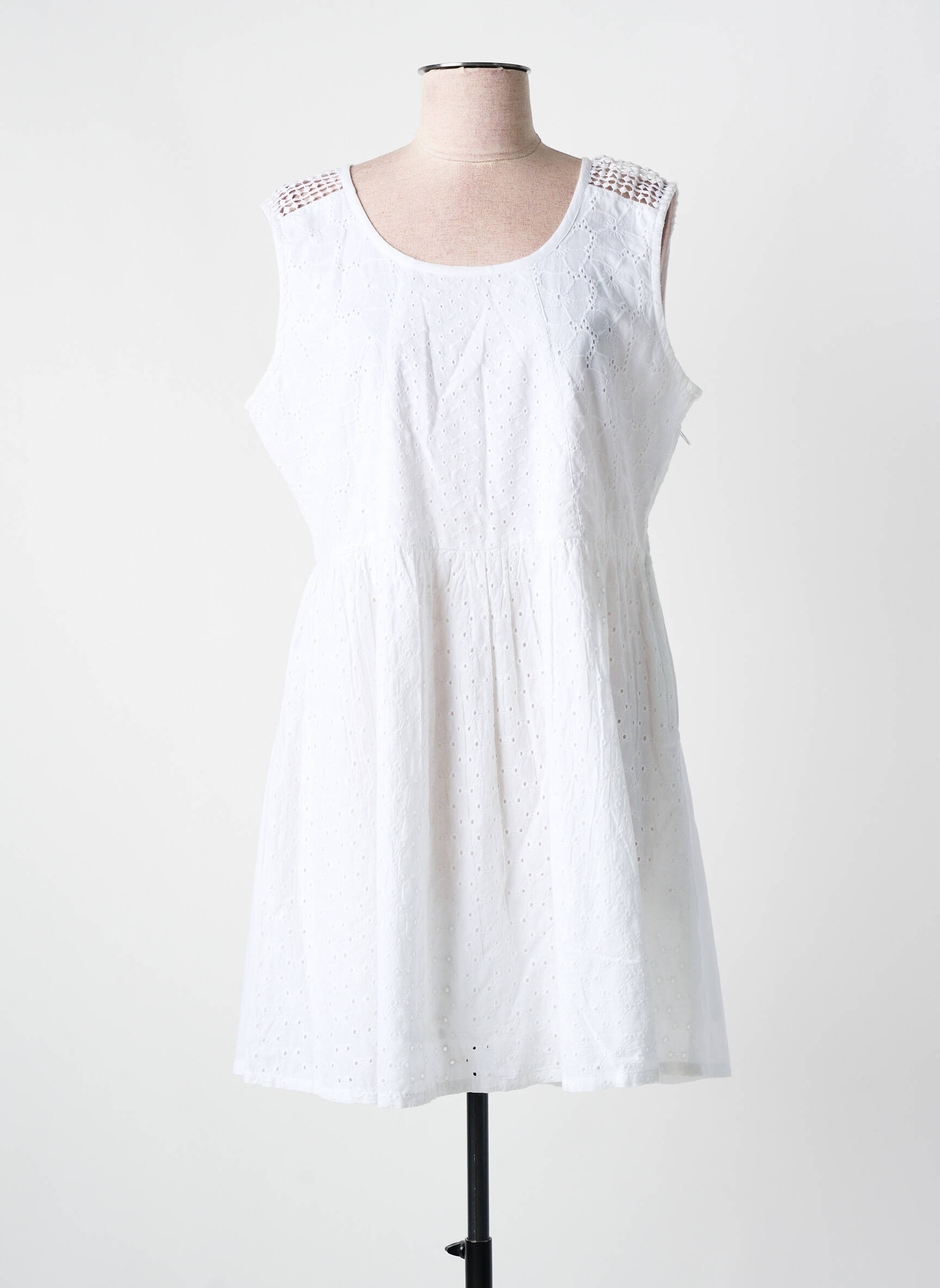 Craquez pour cette robe courte COLINE pour femme, une vraie pépite à petit prix parfaite pour profiter des beaux jours sans faire de folies. Sa coupe légèrement évasée offre une silhouette féminine et décontractée, tandis que son tissu blanc léger laisse apparaître de délicats motifs ajourés pour une touche de fraîcheur et d’élégance. Les épaules ornées apportent une note de raffinement, faisant de cette robe un indispensable aussi confortable qu’avantageux pour renouveler votre dressing à prix doux.