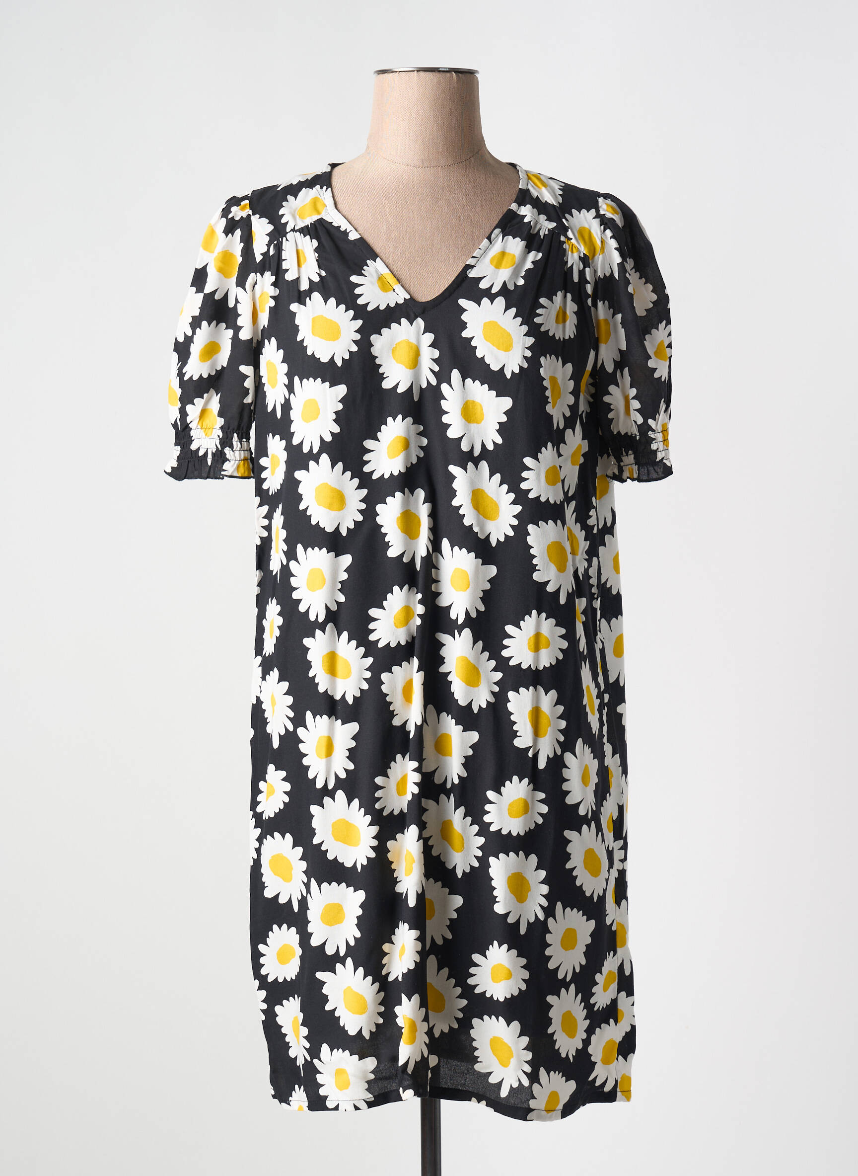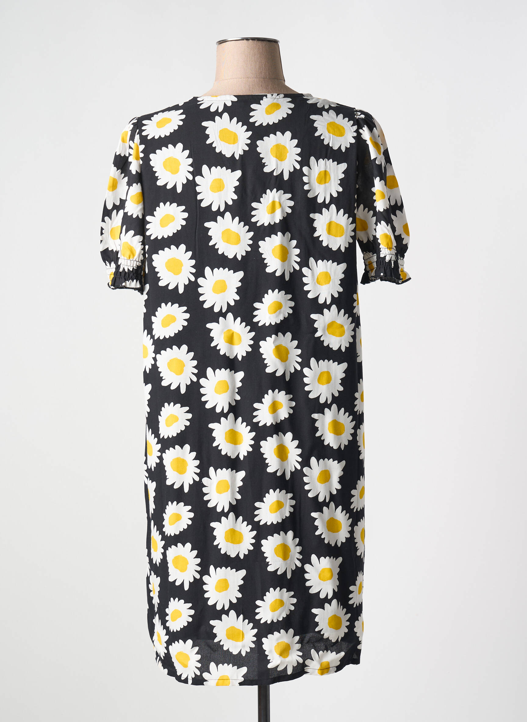 Craquez pour cette robe courte COMPAÑIA FANTASTICA à prix mini, l'occasion idéale de dynamiser votre garde-robe sans vous ruiner. Son imprimé marguerites sur fond noir apporte une touche de fraîcheur et d’originalité, tandis que sa coupe droite et ses manches courtes légèrement bouffantes soulignent un style décontracté et féminin, parfait pour le quotidien comme pour un après-midi en terrasse. C'est le bon plan mode à ne pas manquer pour offrir à votre look une note estivale sans compromettre votre budget.