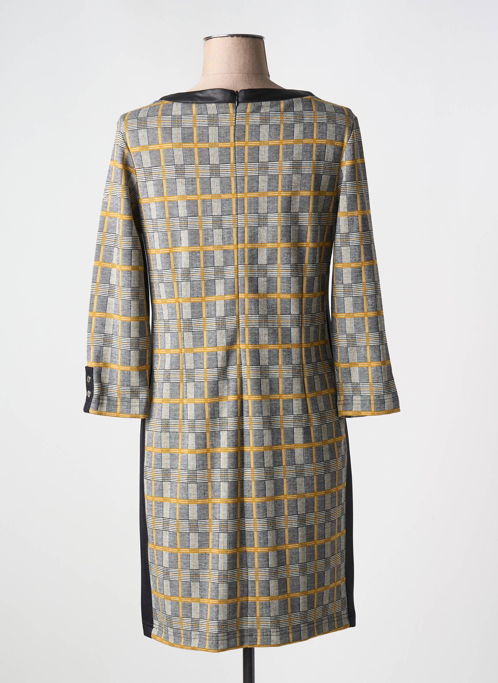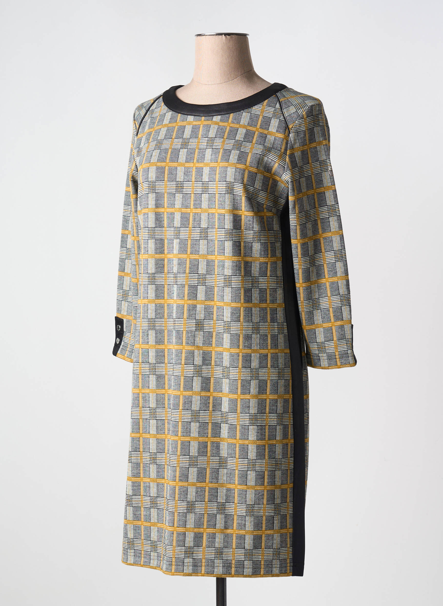 Profitez d’une véritable opportunité mode avec cette robe courte CONCEPT K, idéale pour se faire plaisir sans se ruiner. Son motif à carreaux dans des tons gris, jaune et noir apporte une touche graphique moderne, tandis que la coupe droite et les manches 3/4 offrent un confort parfait pour le quotidien. Les détails contrastés au col et sur les côtés soulignent une allure élégante et décontractée, parfaite pour toutes celles qui recherchent une pièce tendance à petit prix.