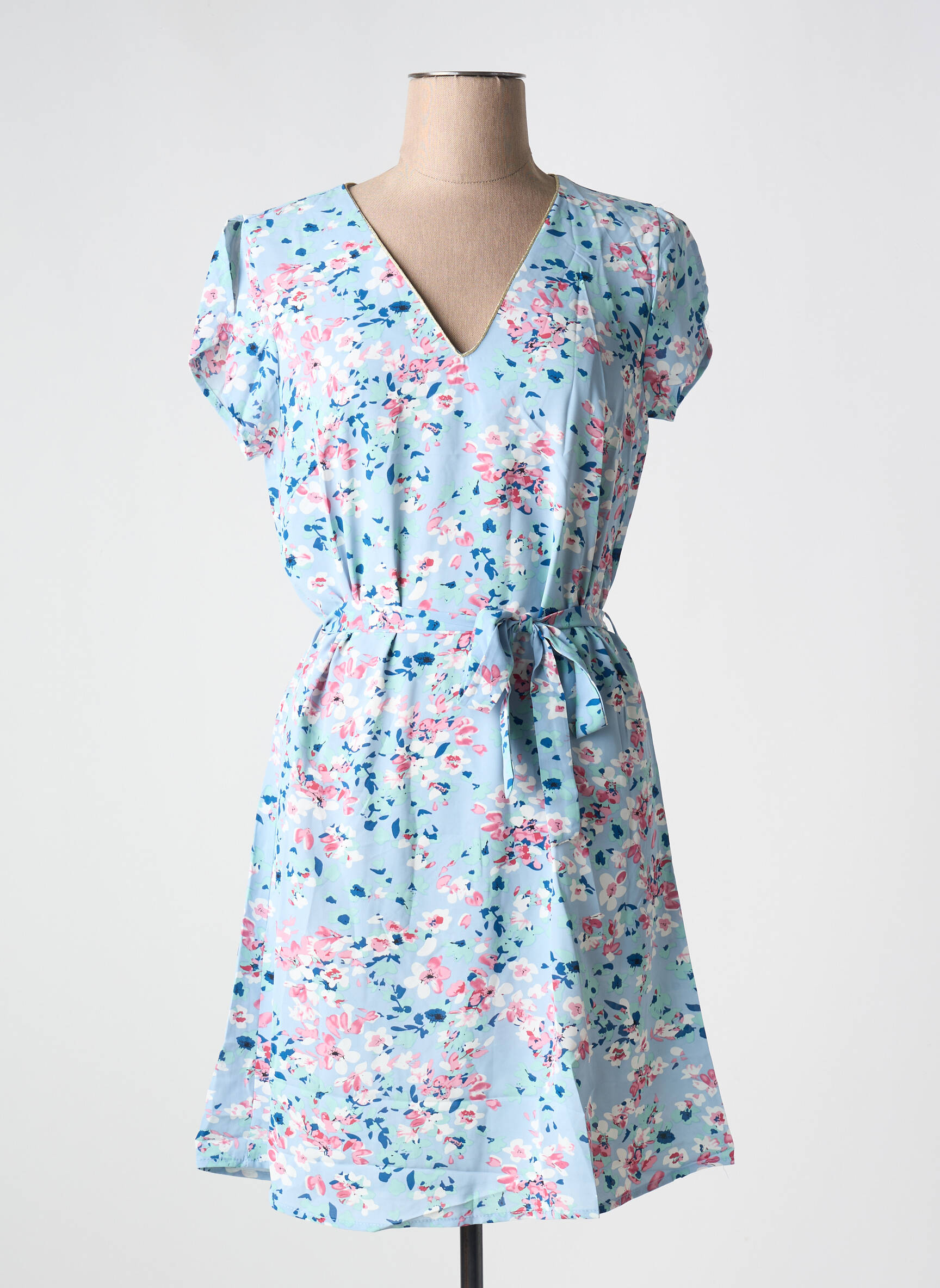 Voici la robe courte EMMA ELLA parfaite pour offrir une touche de fraîcheur à votre garde-robe sans vous ruiner, avec son imprimé fleuri délicat sur une base bleu pastel, elle arbore une coupe fluide et féminine, un joli décolleté en V et une ceinture à nouer qui souligne la taille tout en élégance, idéale pour profiter des beaux jours à petit prix.
