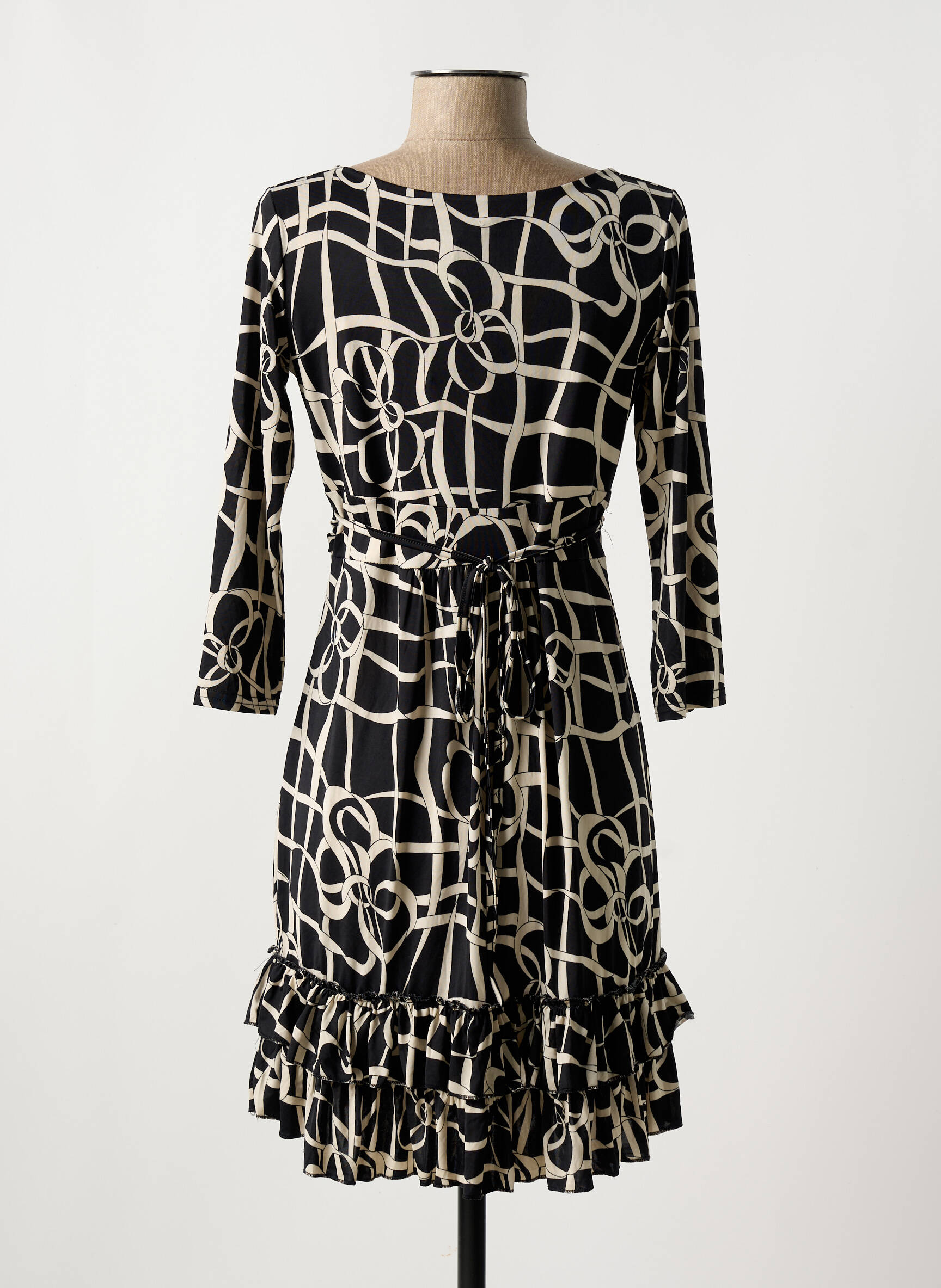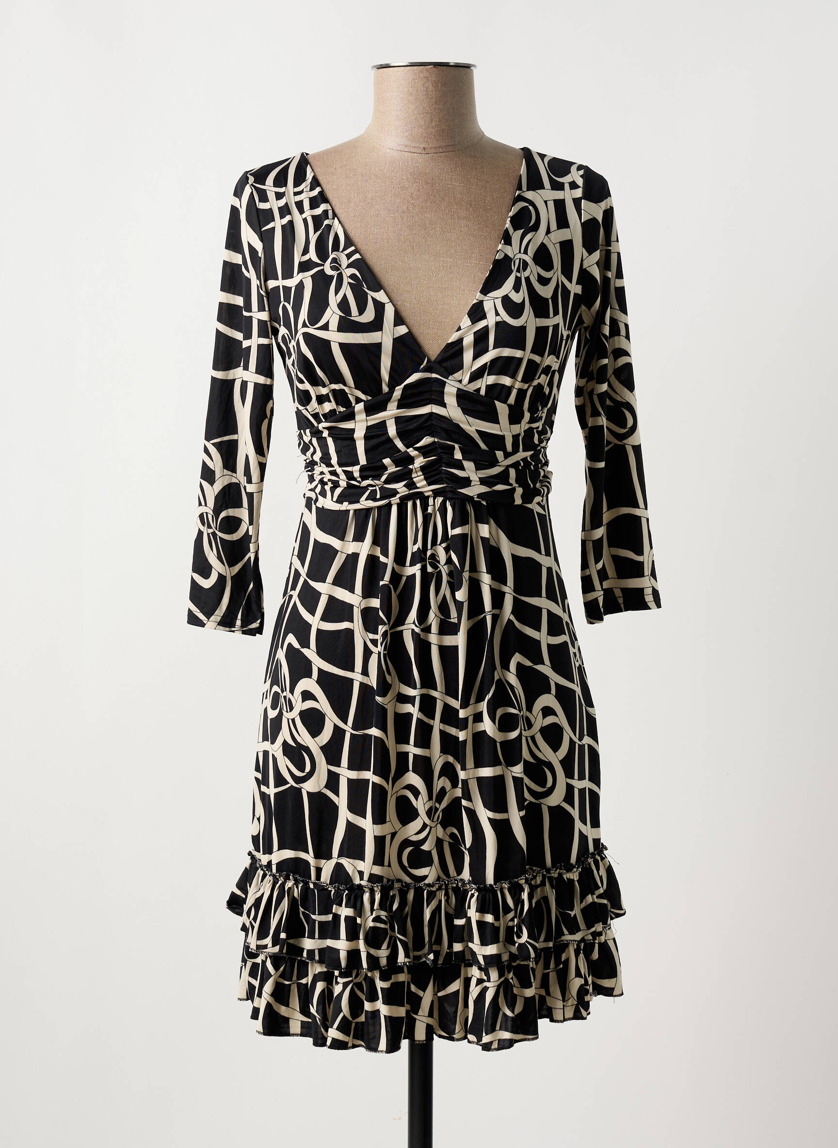 Craquez pour cette robe courte de la marque FIFILLES, parfaite pour se faire plaisir sans se ruiner. Avec son motif graphique noir et écru, son décolleté cache-cœur flatteur et sa ceinture ajustée à la taille, elle met en valeur la silhouette tout en restant très confortable. Les manches trois-quarts et les volants à la base apportent une touche féminine et élégante, idéale pour des looks de tous les jours ou pour une soirée entre amis. C’est le bon plan du moment pour adopter une pièce tendance à prix mini, à ne pas laisser passer si vous cherchez une robe chic et facile à porter.