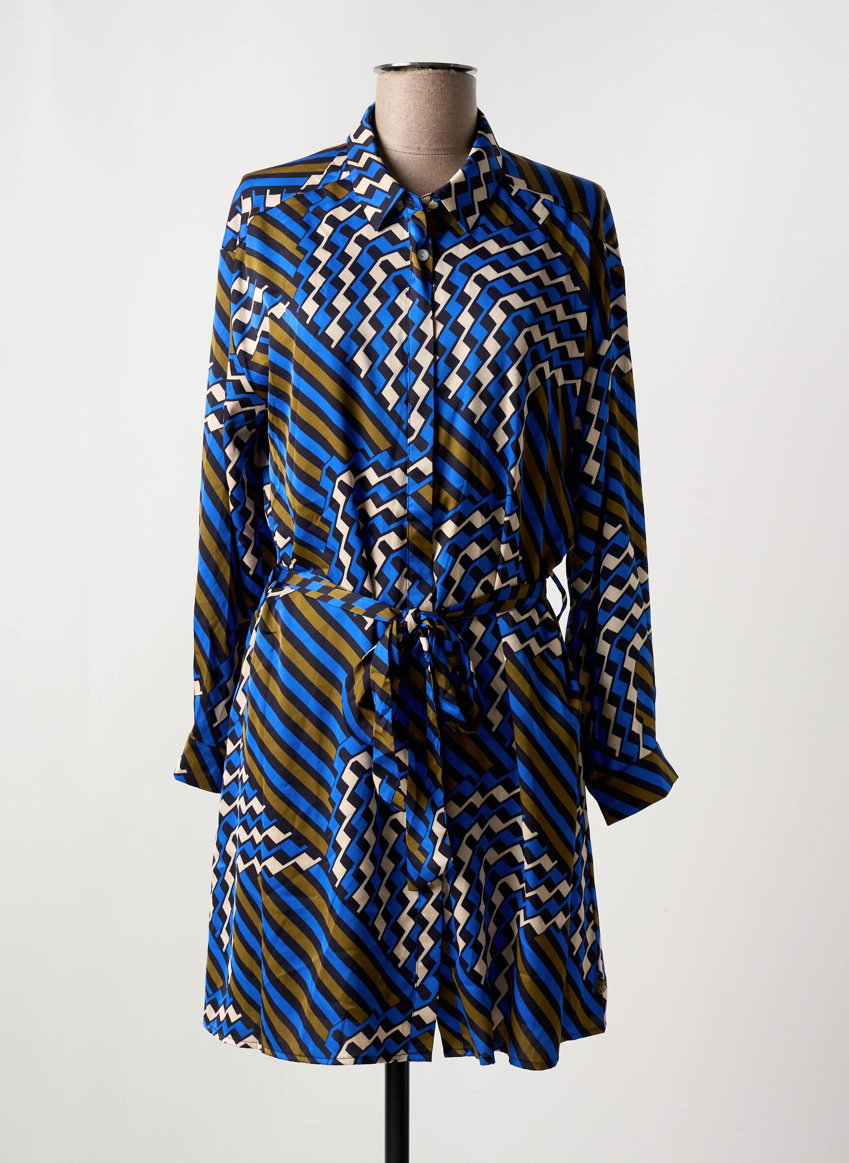 Craquez pour cette robe courte FREEMAN T.PORTER à prix mini, idéale pour celles qui souhaitent allier style et économies. Sa coupe chemise modernisée par une ceinture à nouer sublime la silhouette, tandis que son motif graphique bleu, kaki et blanc ajoute une touche dynamique et contemporaine à votre look du quotidien. Parfaitement adaptée aux envies de renouveau à petit prix, cette robe originale se porte aussi bien en journée qu’en soirée pour un effet coup de cœur garanti.