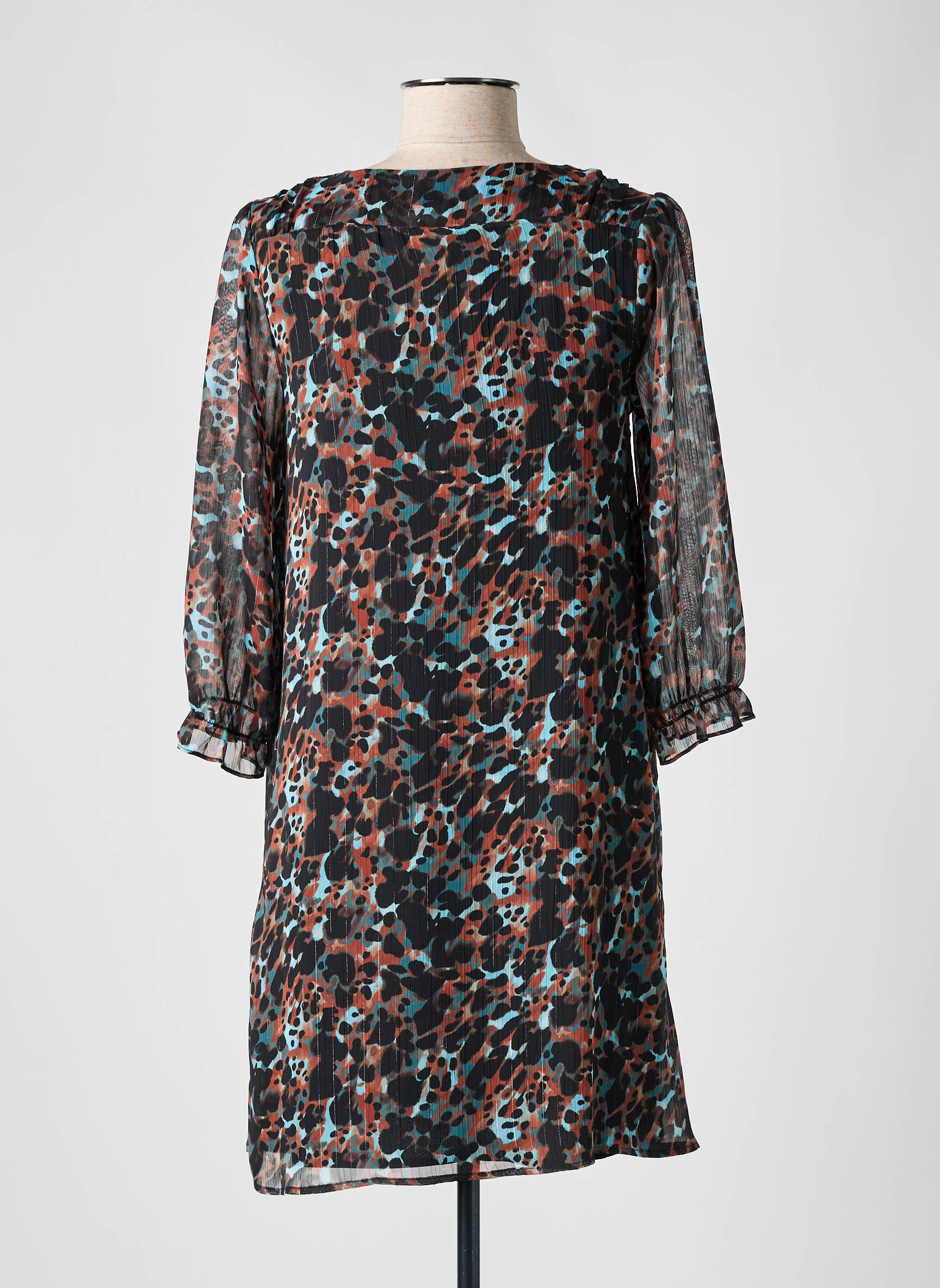 Craquez pour cette robe courte FREEMAN T.PORTER pour femme, une véritable trouvaille à petit prix qui conjugue style et légèreté. Sa coupe fluide met en valeur une silhouette féminine tout en offrant un confort optimal. Les manches légèrement transparentes apportent une touche raffinée et tendance, tandis que l’imprimé original aux teintes contrastées apporte la note de modernité idéale pour toutes les occasions. Ce modèle est un vrai bon plan mode pour renouveler votre garde-robe avec élégance sans vous ruiner.