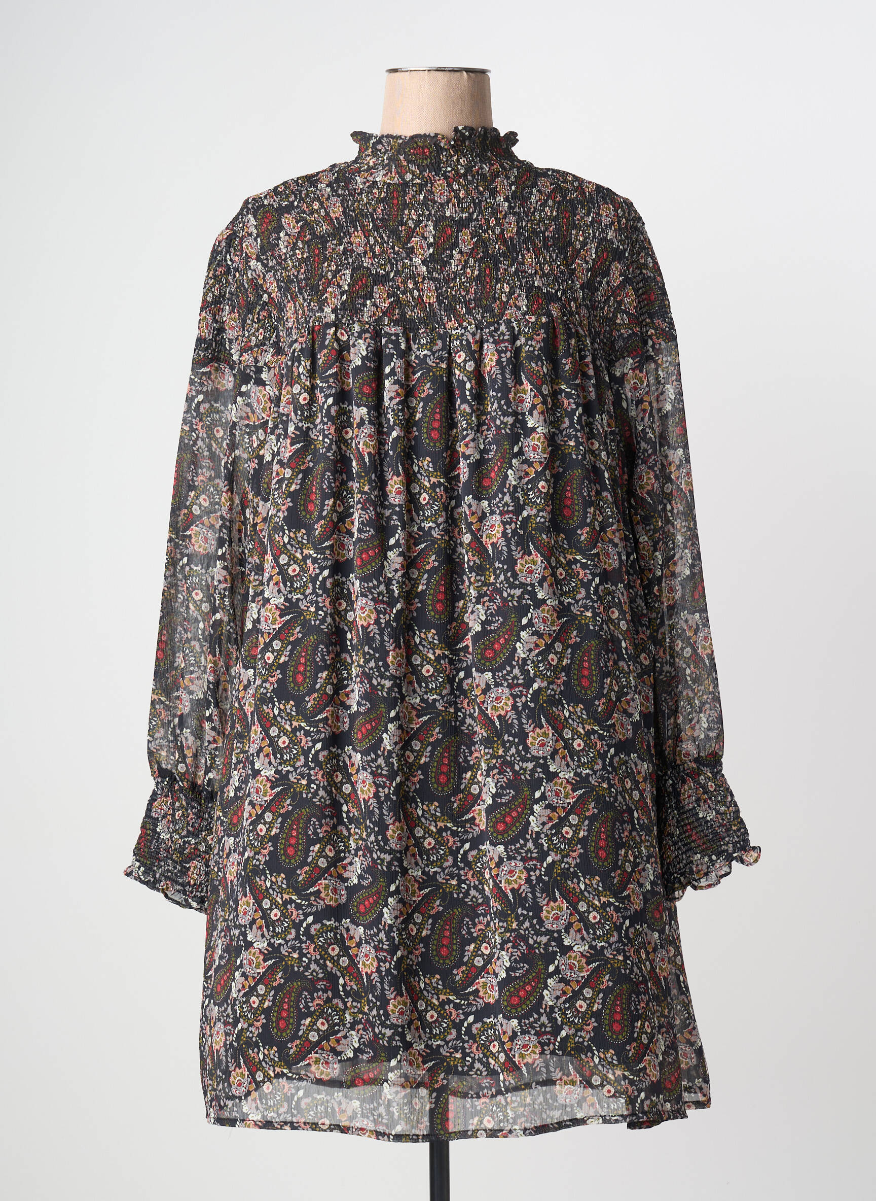 Pour un look quotidien plein de style, tu peux porter cette robe avec une paire de bottines en cuir et une veste en jean légèrement oversize. Pour un esprit plus habillé, elle se marie parfaitement avec des collants opaques et un manteau long uni, accompagnés d’accessoires dorés pour souligner ses motifs. Son allure légère s’accorde aussi avec des sandales et un petit sac bandoulière pour les beaux jours, idéale pour composer des tenues variées selon tes envies.