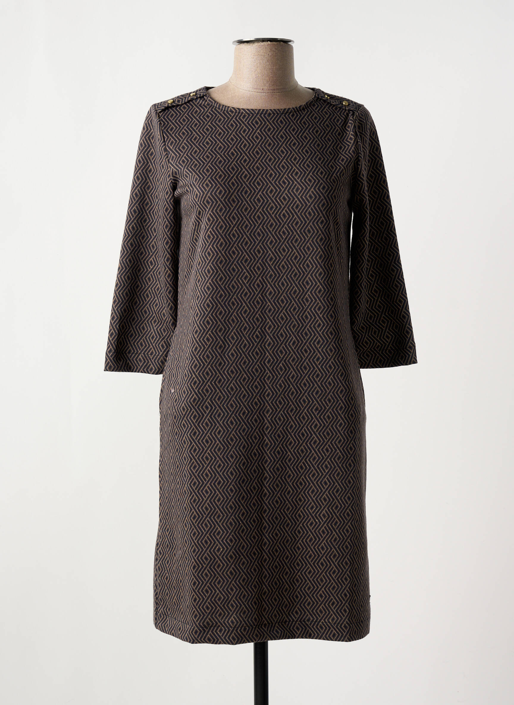 Robe Courte Garcia Marron Manches 3/4