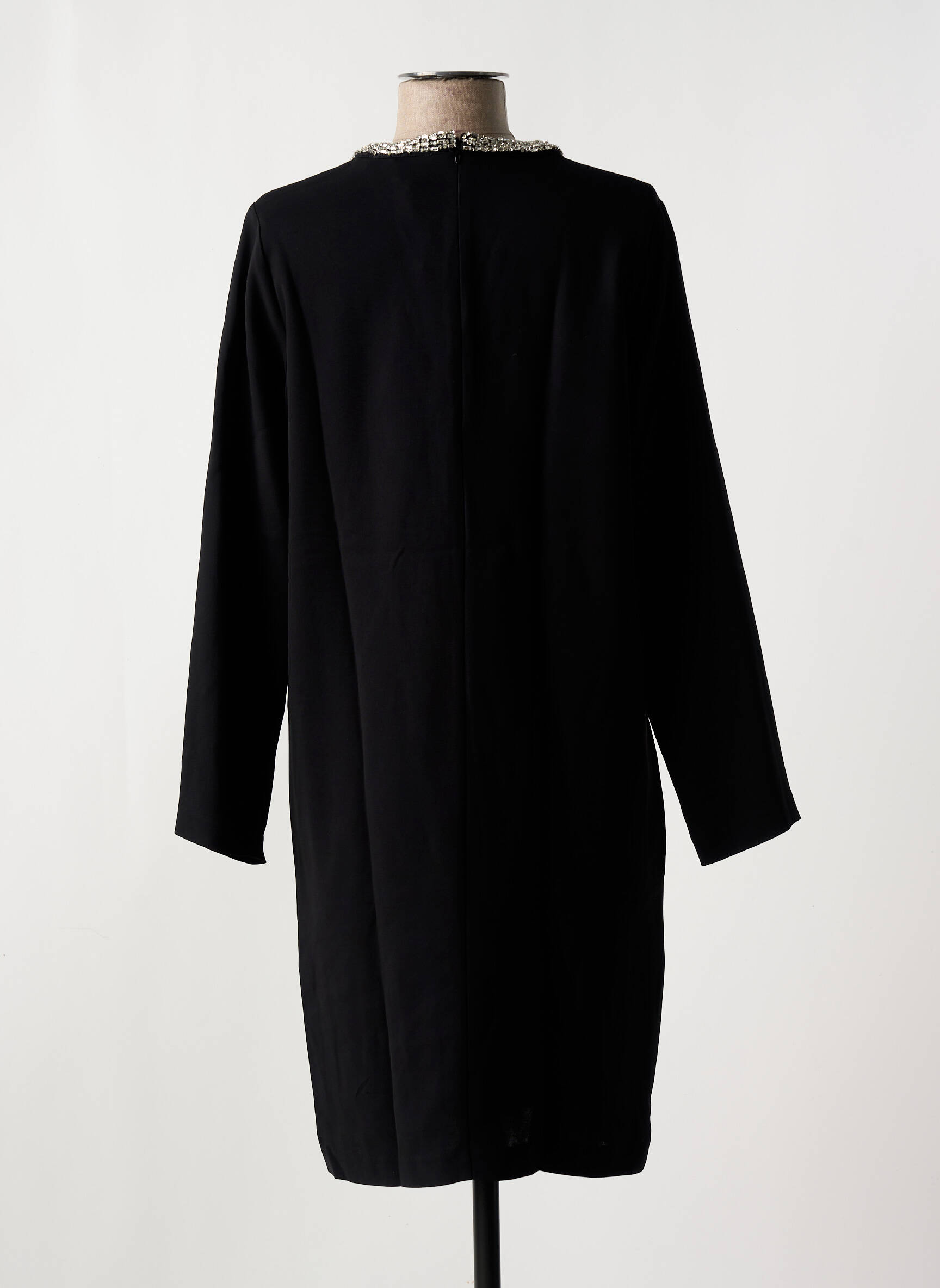 On ne s'attend pas toujours à ce qu'une robe noire révèle autant de caractère en toute simplicité. Cette robe courte de Gérard Darel pour femme joue avec l'élégance discrète grâce à sa coupe droite et aérienne, sublimée par un col légèrement échancré orné d'un subtil galon argenté qui apporte une touche raffinée et lumineuse. Les manches longues, légèrement amples, confèrent un équilibre parfait entre confort et sophistication, faisant de cette pièce un incontournable versatile pour des looks à la fois chics et décontractés.