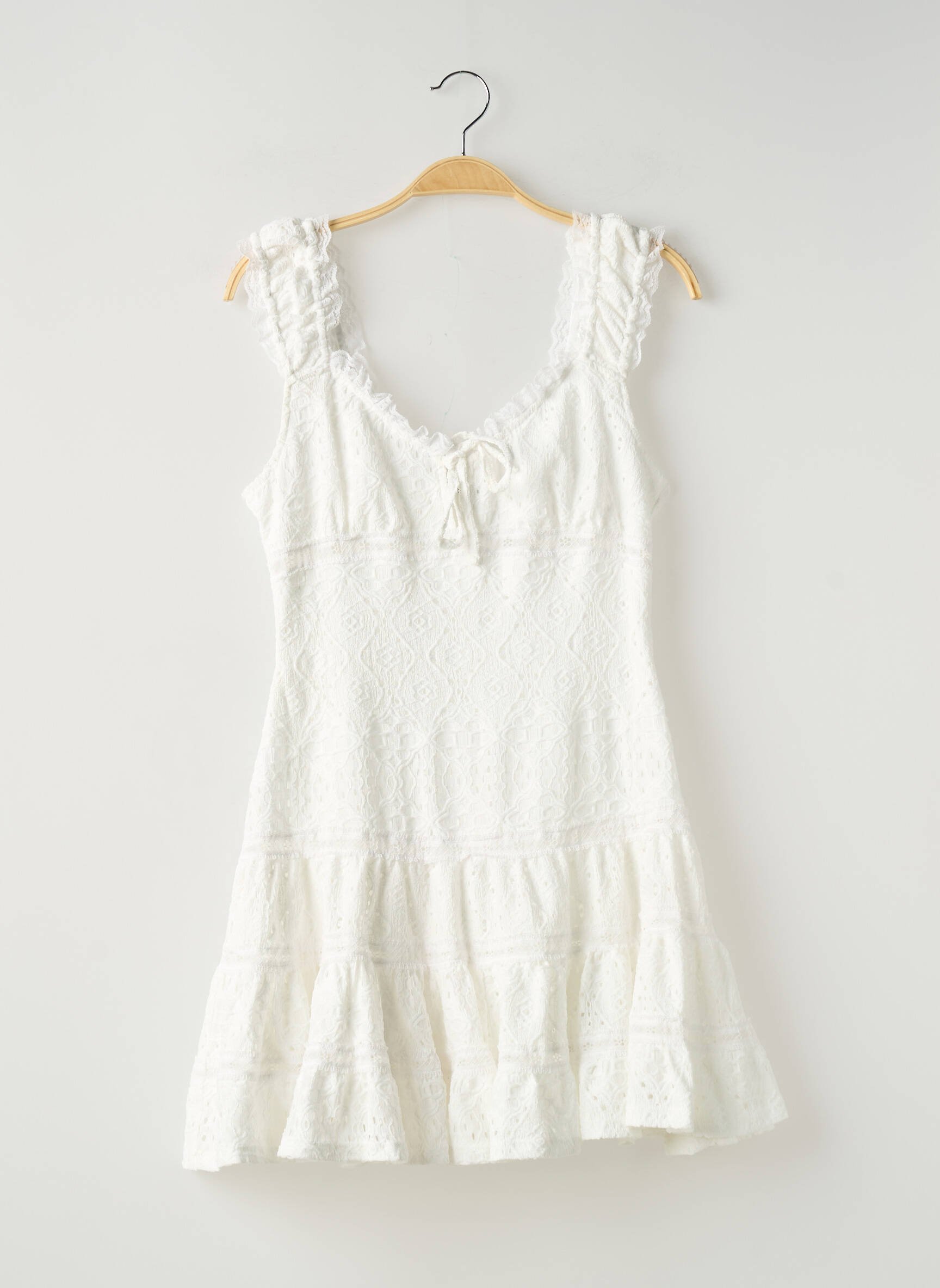 Craquez pour cette robe courte GINA TRICOT au charme délicat, parfaite pour les beaux jours et proposée à prix mini pour se faire plaisir sans se ruiner. Sa coupe légèrement évasée, son joli décolleté agrémenté d’un petit nœud, ses bretelles volantées et sa matière délicatement texturée lui apportent une touche féminine et tendance que vous pourrez porter aussi bien en journée qu’en soirée, tout en réalisant une véritable affaire mode.