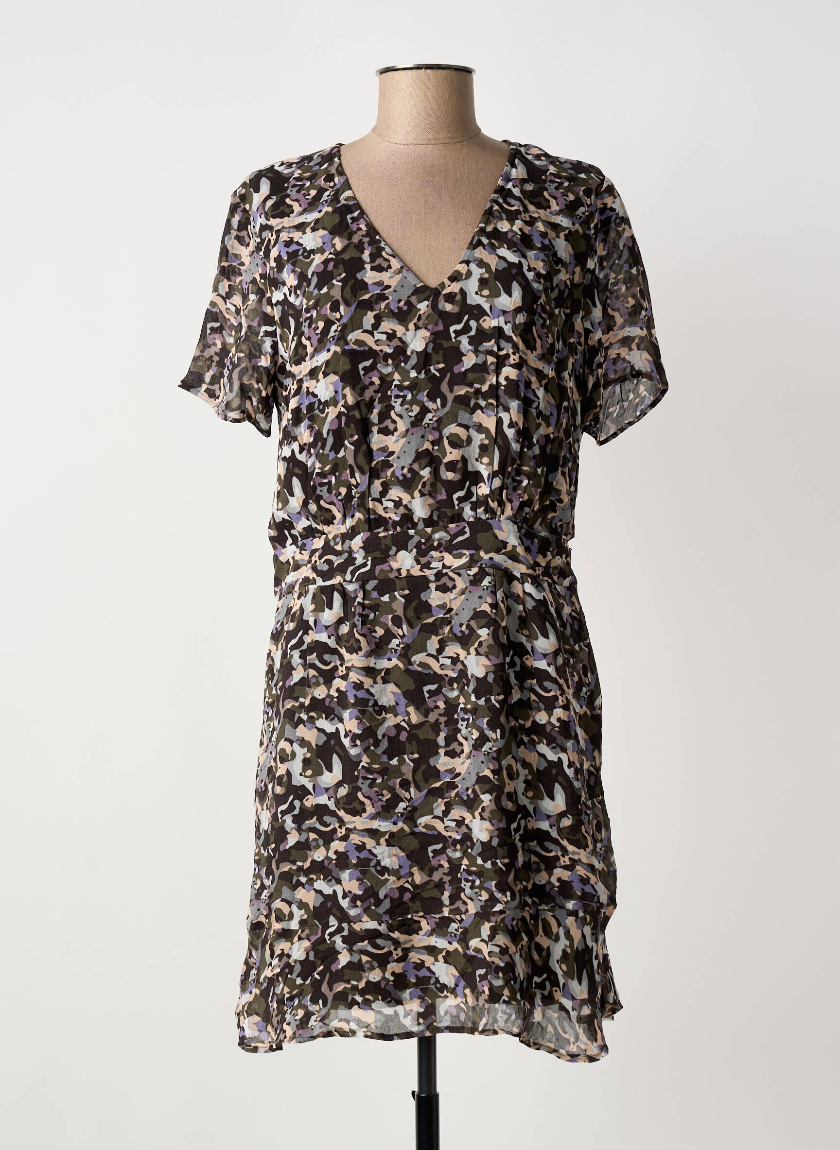 Craquez pour cette robe courte IKKS pour femme, une pièce à petit prix qui combine élégance et caractère grâce à son imprimé original mêlant des teintes sombres et claires. Sa coupe fluide et féminine, sublimée par un joli décolleté en V, offre une allure moderne et facile à porter au quotidien, tout en vous permettant de vous offrir une création de marque sans vous ruiner. Voilà l’occasion idéale d’ajouter à votre dressing une robe tendance à prix doux.