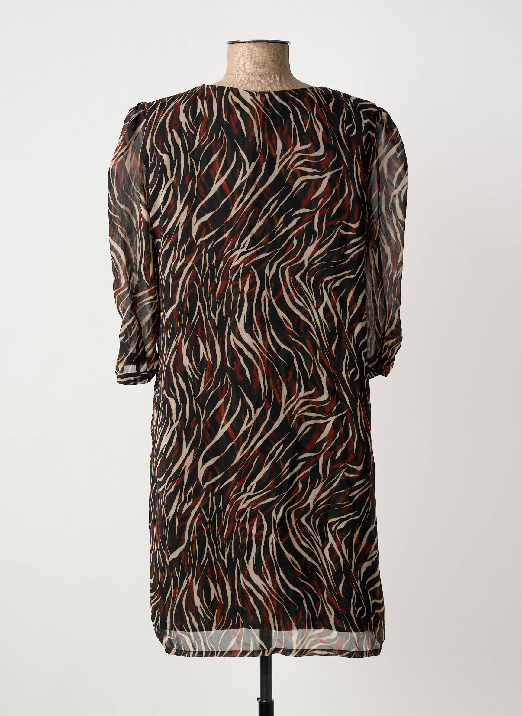 Craquez pour cette robe courte IKKS pour femme, une vraie affaire à ne pas manquer pour sublimer votre garde-robe avec style sans vous ruiner. Son imprimé graphique façon zébré, relevé de touches chaudes, apportera une touche d’originalité à votre silhouette, tandis que sa coupe fluide à manches légèrement bouffantes assure un confort chic en toutes circonstances. C’est le bon plan mode du moment pour un look tendance à prix doux.