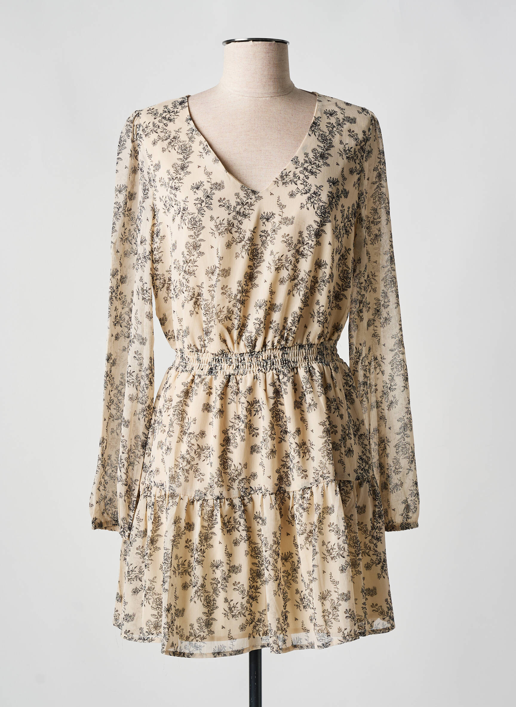 Robe Courte Ikoone&bianka Beige Manches Longues
