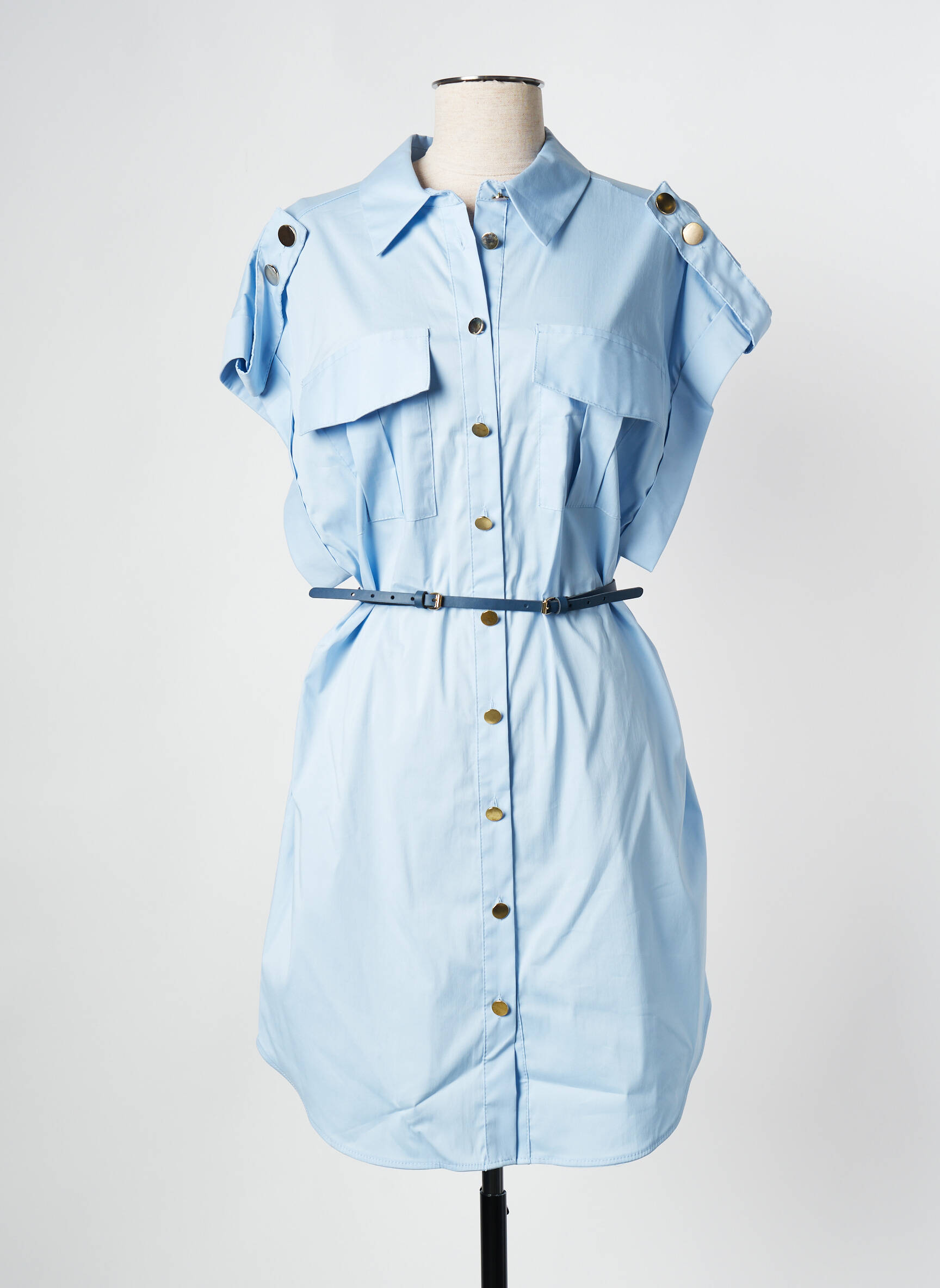 Craquez pour cette robe courte IMPERIAL à prix mini, une pièce tendance et polyvalente à adopter sans hésiter dans votre dressing. Avec sa coupe chemise, ses poches à rabat et sa série de boutons dorés, elle joue la carte du chic décontracté, tandis que la ceinture fine souligne la taille pour une silhouette féminine. Profitez vite de cette robe idéale pour toutes vos journées estivales à petit prix !