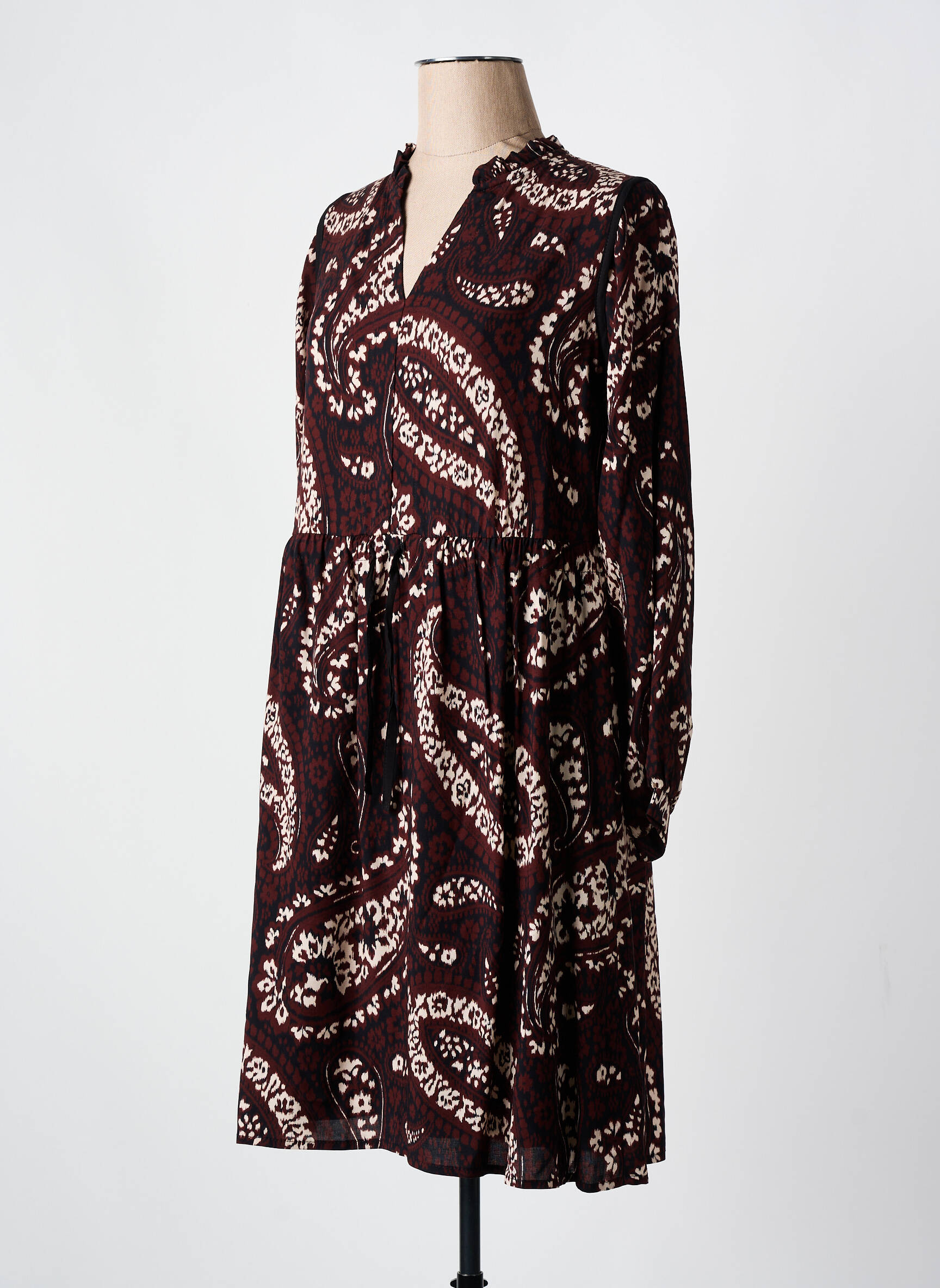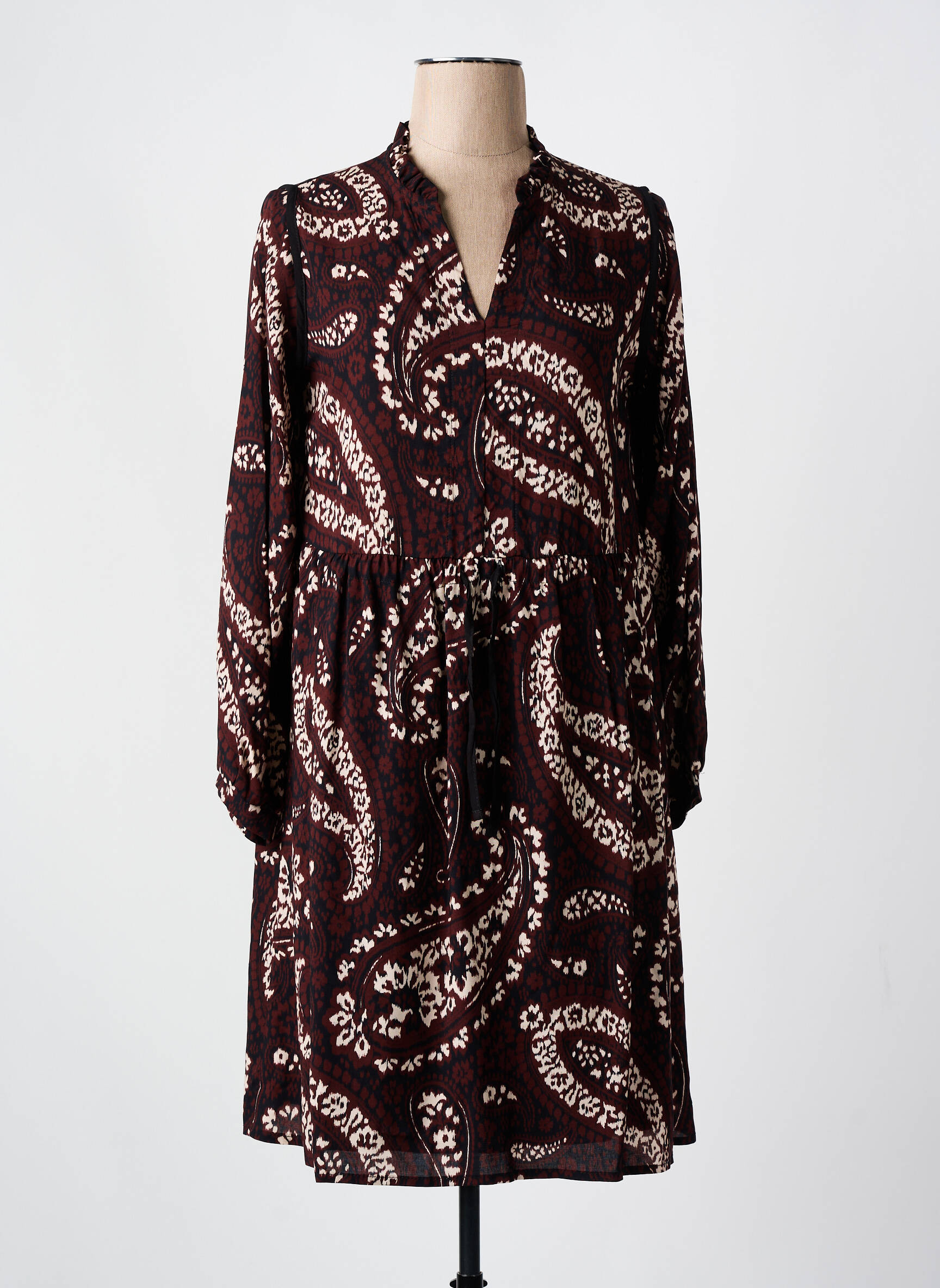Craquez pour cette robe courte LA FEE MARABOUTEE à prix mini et donnez un nouveau souffle à votre garde-robe sans vous ruiner grâce à ce modèle au superbe imprimé paisley dans les tons bordeaux et écru, avec une coupe fluide et féminine, des manches longues et une ceinture ton sur ton pour sublimer votre silhouette tout en profitant d'une vraie bonne affaire.