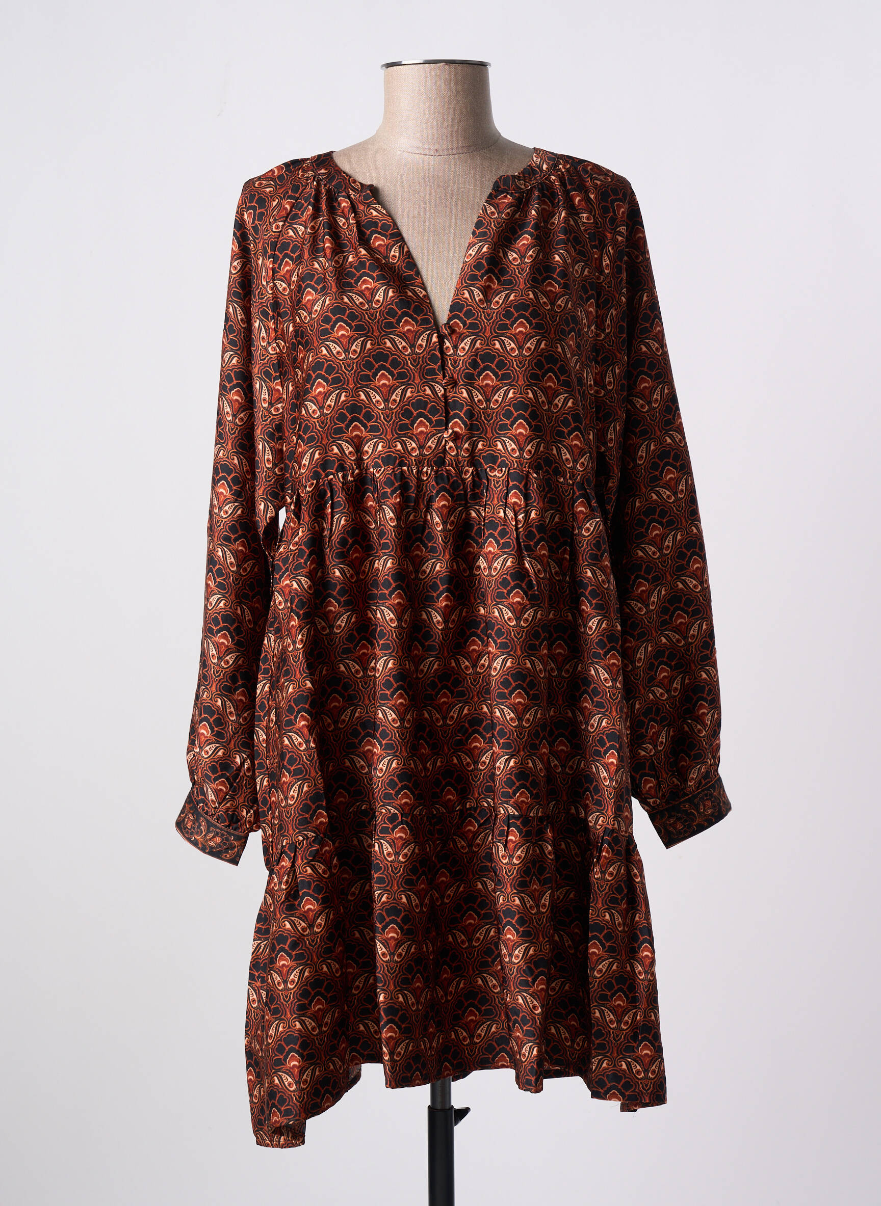 Robe Courte La Petite Etoile Marron Manches Longues