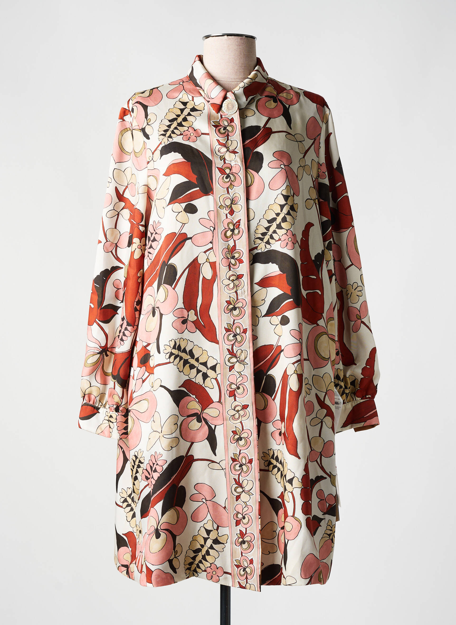 Profitez d’un bon plan irrésistible avec cette robe courte de la marque Maliparmi, une pièce parfaite pour apporter une touche d’originalité à votre garde-robe sans vous ruiner. Son imprimé floral et graphique dans des tons chaleureux de rouge, noir et beige illumine votre silhouette tout en offrant un style unique, tandis que la coupe légèrement ample assure un confort optimal et une allure décontractée. Les détails soignés du boutonnage et les manches longues accentuent le raffinement de cette robe idéale pour une élégance singulière à petit prix.