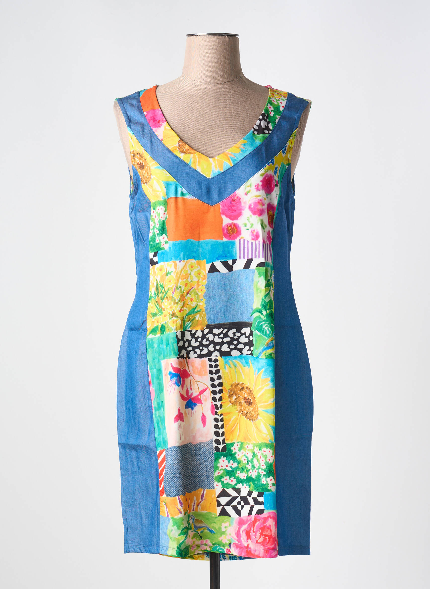 Faites-vous plaisir sans vous ruiner avec cette robe courte MALOKA pour femme, alliant originalité et petits prix. Son patchwork coloré, rehaussé de motifs floraux et graphiques, apporte une vraie touche de fraîcheur et de dynamisme à la silhouette, tandis que sa coupe droite et son encolure en V valorisent la féminité tout en garantissant un confort optimal. Cette pièce unique est parfaite pour celles qui veulent s’offrir une robe tendance et lumineuse à prix malin.