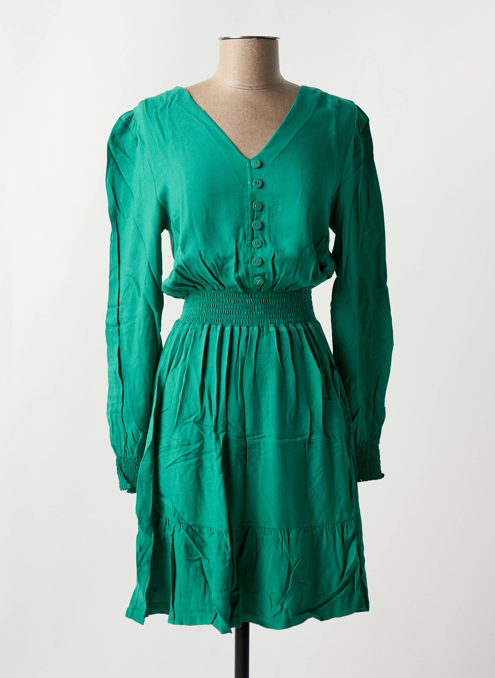 Craquez pour cette robe courte MALOKA à prix mini et offrez-vous une pièce tendance sans vous ruiner. Son tissu fluide vert éclatant met instantanément en valeur la silhouette grâce à sa coupe légèrement évasée et sa taille marquée. Les détails de boutons sur le devant apportent une touche élégante et féminine, tandis que les manches longues et le décolleté en V ajoutent une note raffinée parfaite pour toutes vos occasions. C’est l’occasion idéale d’ajouter à votre dressing une robe chic et facile à porter, tout en profitant d’un véritable bon plan mode.