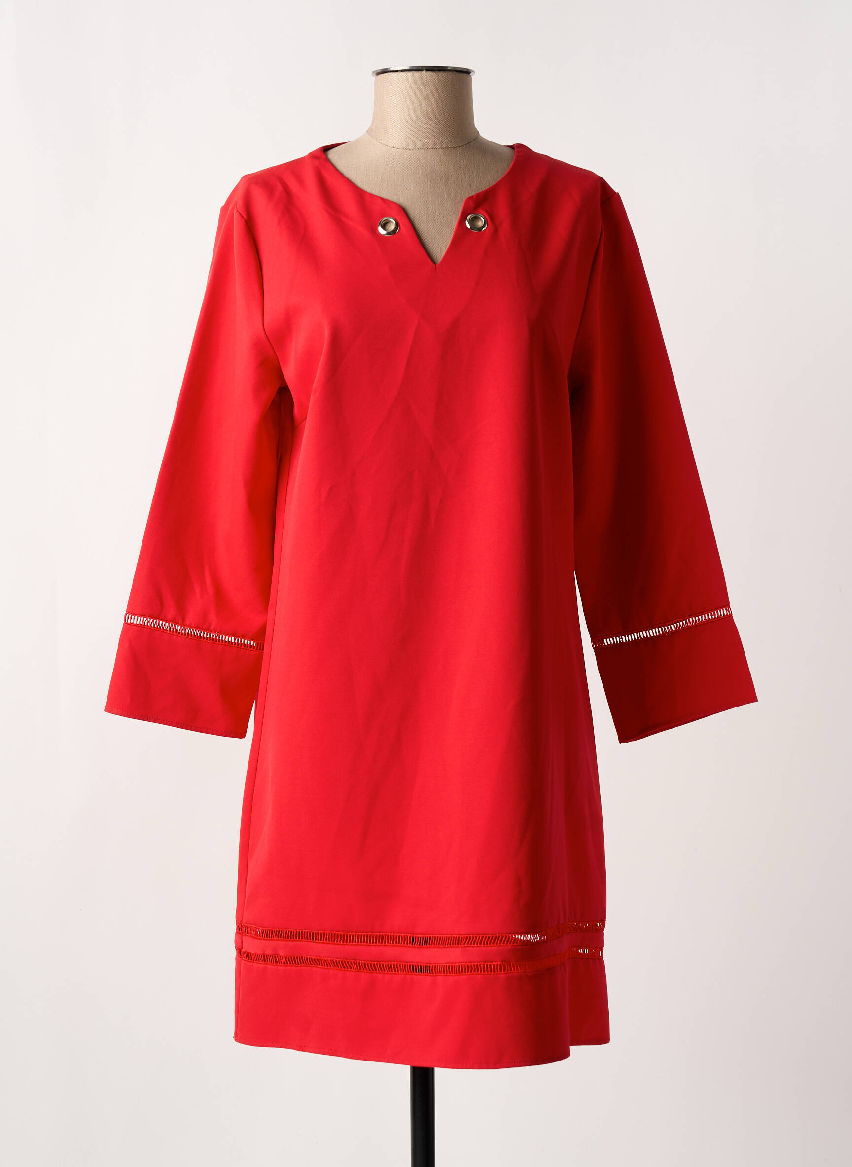Saisissez l’opportunité de vous offrir une robe courte de la marque MD'M à prix tout doux, idéale pour apporter une touche de couleur à votre garde-robe tout en maîtrisant votre budget. Ce modèle affiche une teinte rouge dynamique, rehaussée de détails discrets en bas des manches et sur l’ourlet, ainsi qu’un joli col orné de deux œillets dorés qui ajoutent une note originale et moderne à l’ensemble. Grâce à sa coupe légèrement évasée et à ses manches longues, cette robe est parfaite pour un style chic sans effort, que ce soit au quotidien ou lors d’une occasion particulière.