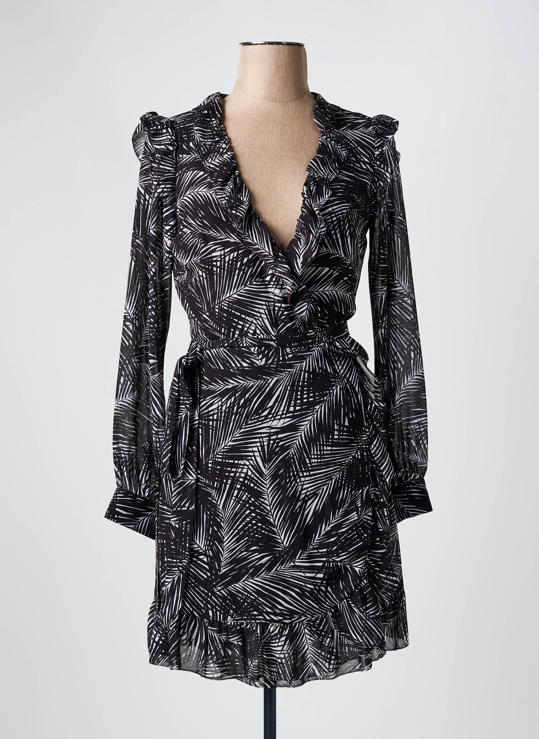 Profitez d’une véritable opportunité mode avec cette robe courte MICHAEL KORS à prix tout doux. Son imprimé feuillage noir et blanc, son décolleté cache-cœur élégant et sa taille ceinturée mettent votre silhouette en valeur tout en vous garantissant un look tendance et raffiné, idéal pour toutes vos sorties estivales. Une pièce chic à saisir sans hésiter pour faire rimer économies et style de marque.