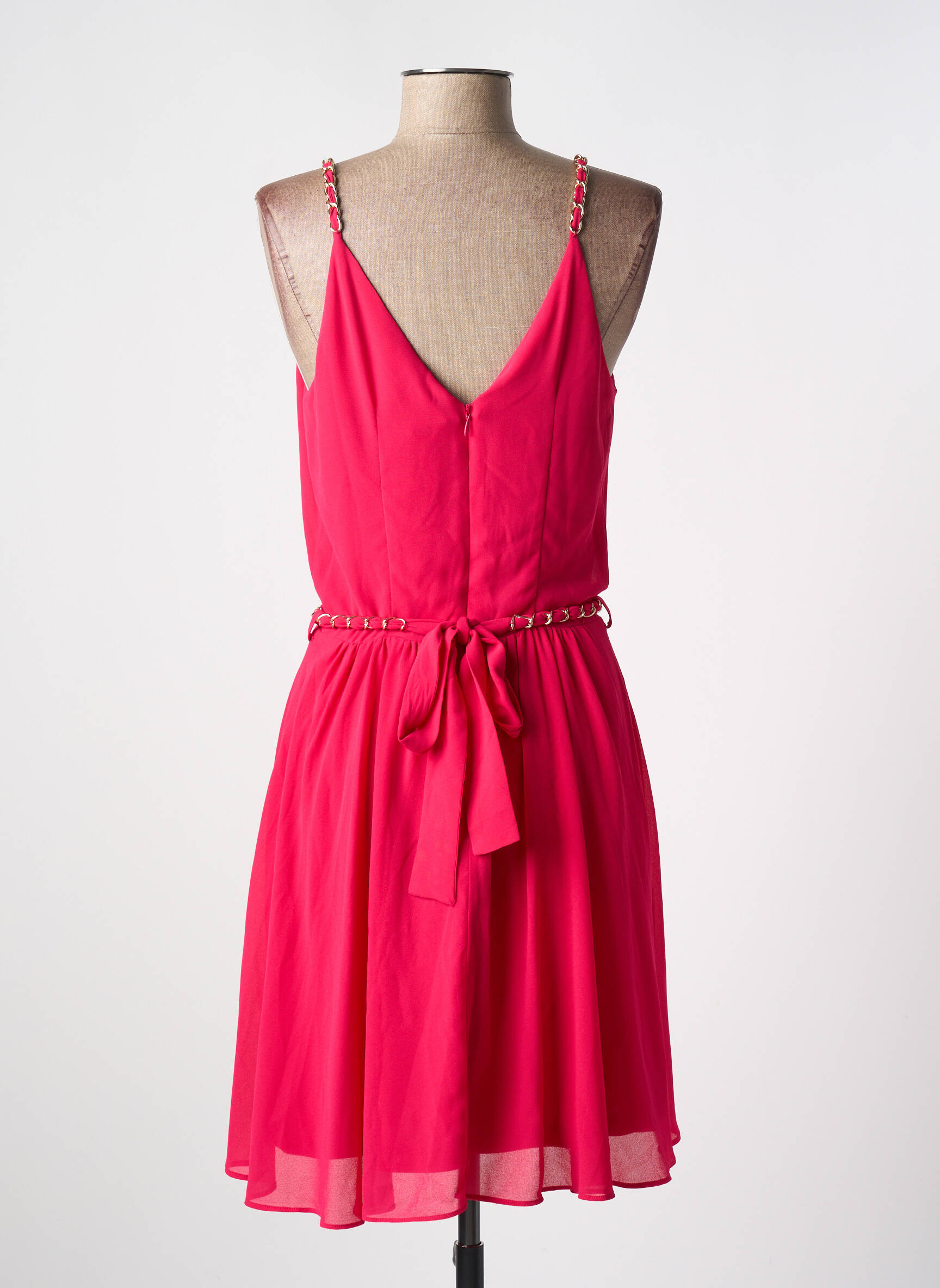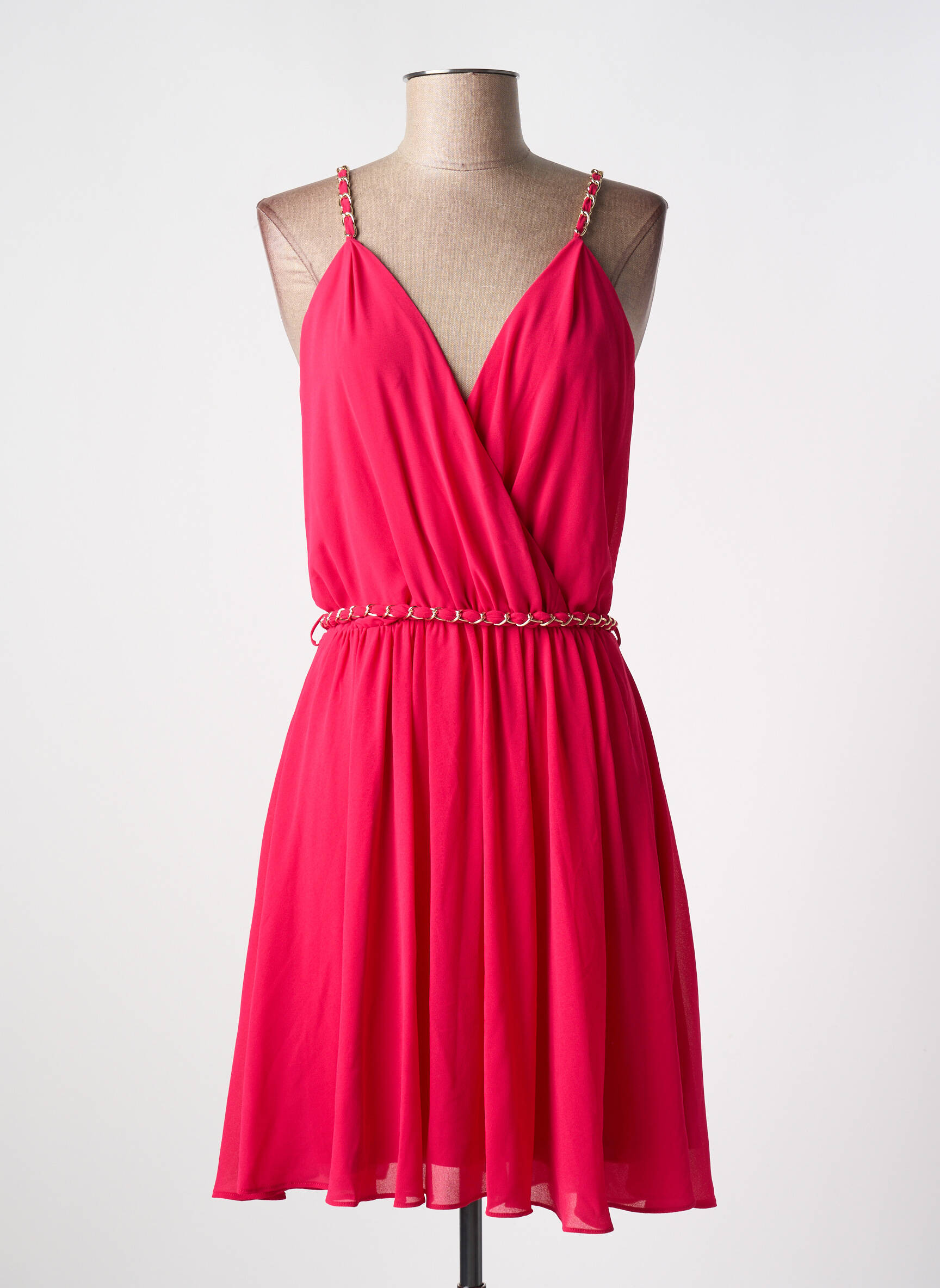 Craquez pour cette robe courte MORGAN à prix mini et affichez un look tendance sans vous ruiner. Avec son tissu fluide et sa coupe féminine, elle met en valeur la silhouette grâce à un décolleté croisé et des bretelles en chaîne dorée qui apportent une touche élégante et moderne. Sa taille légèrement resserrée souligne la taille pour un tombé parfait et confortable, idéal pour toutes vos occasions estivales. Ne manquez pas cette belle affaire pour ajouter une pièce chic et stylée à votre dressing tout en faisant des économies.