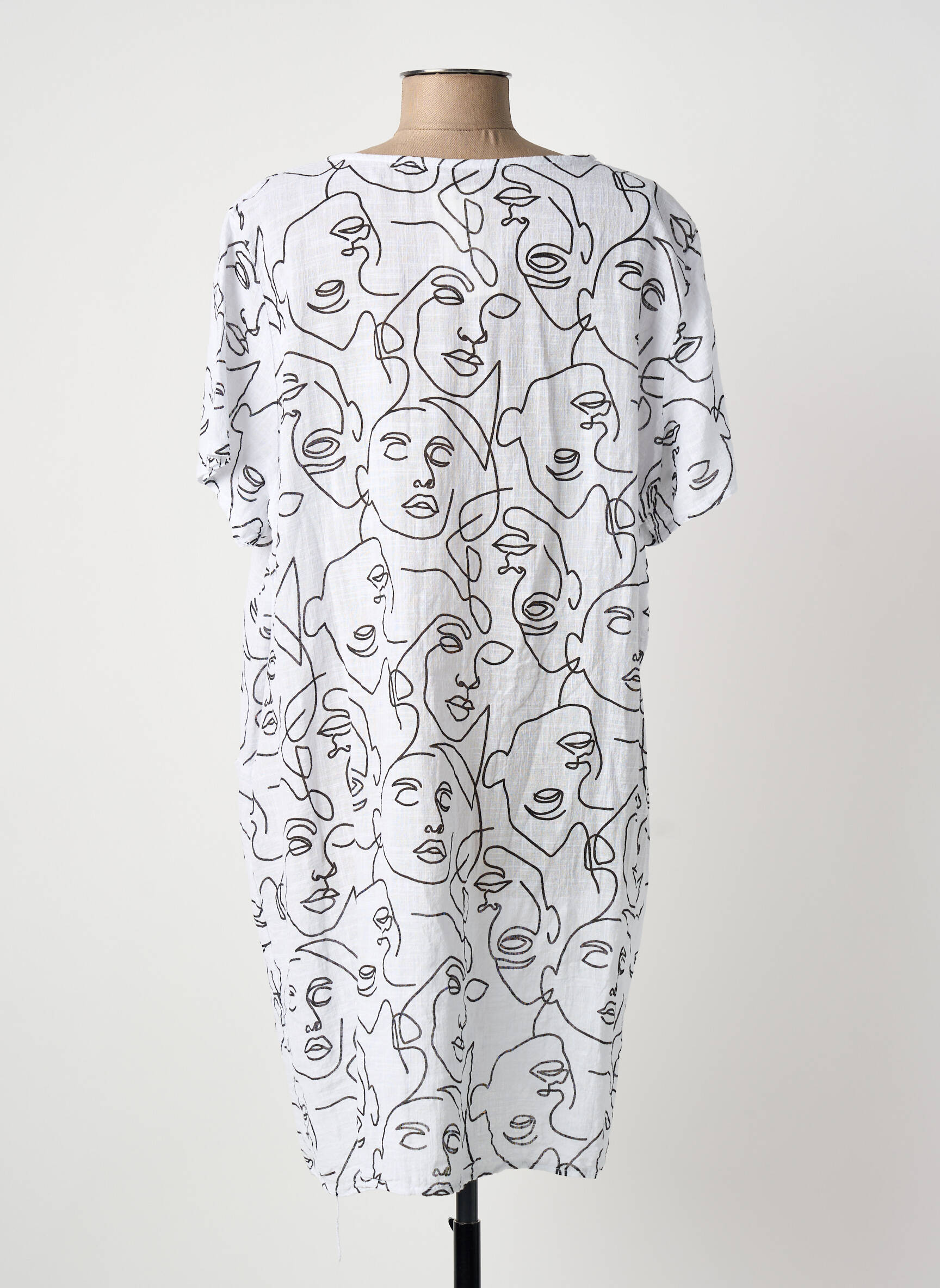Misez sur une allure moderne à prix mini avec cette robe courte NEW COLLECTION, dont l'imprimé graphique représentant des visages apporte une touche d'originalité et de fraîcheur à votre dressing. Son tissu léger et sa coupe ample assurent un confort idéal au quotidien, parfait pour celles qui cherchent à allier style unique et petits prix sans compromis sur la tendance. Profitez de cette occasion pour craquer sans vous ruiner !