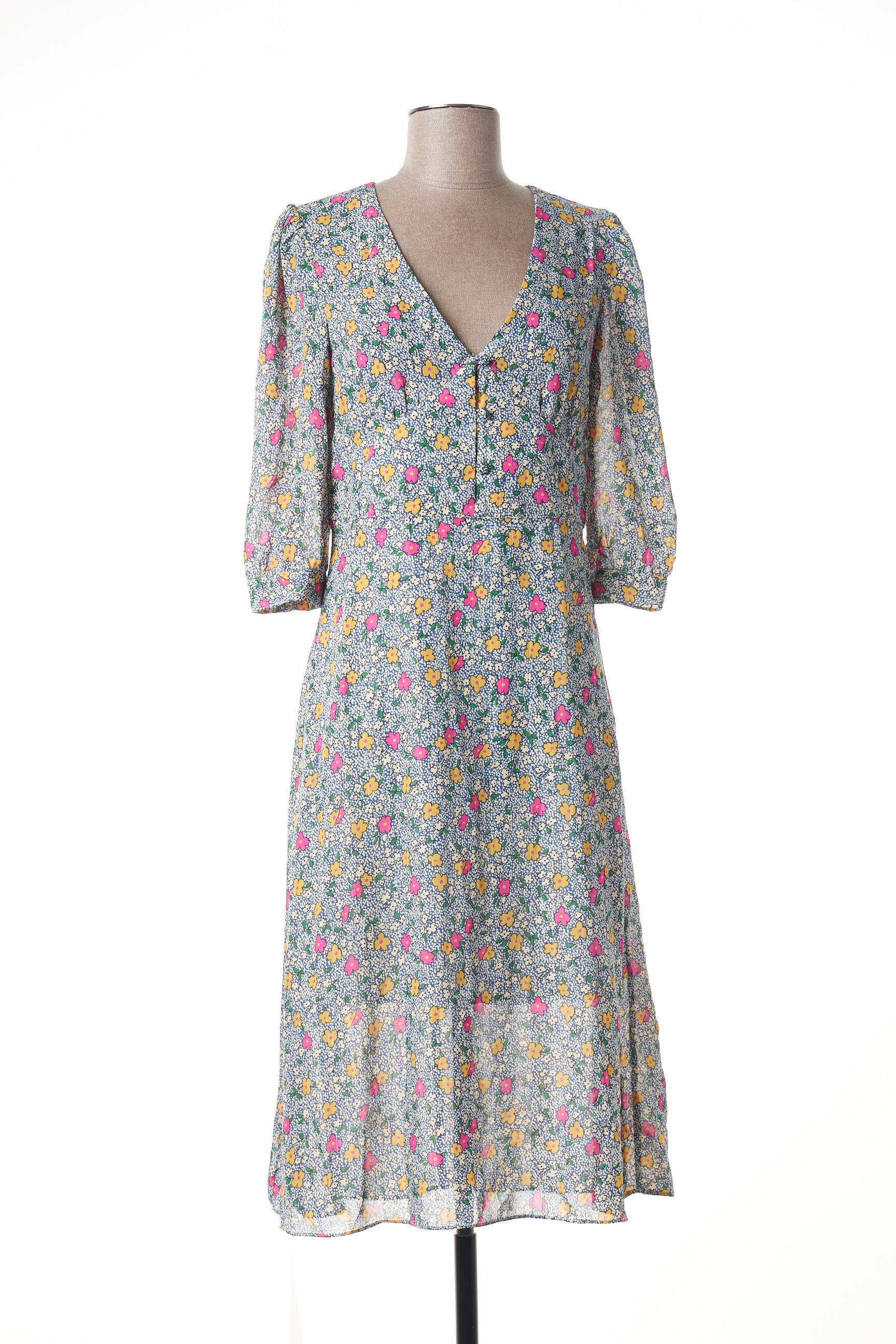 Robe Courte Orfeo Bleu Manches 3/4
