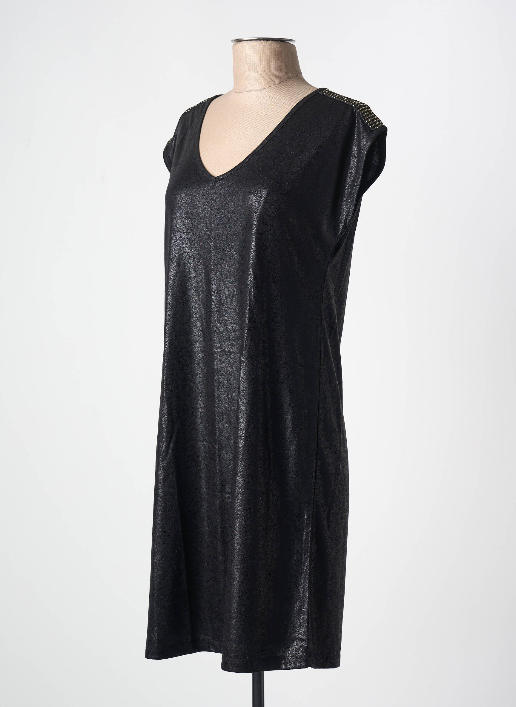 Robe Courte Pieces Noir Manches Courtes
