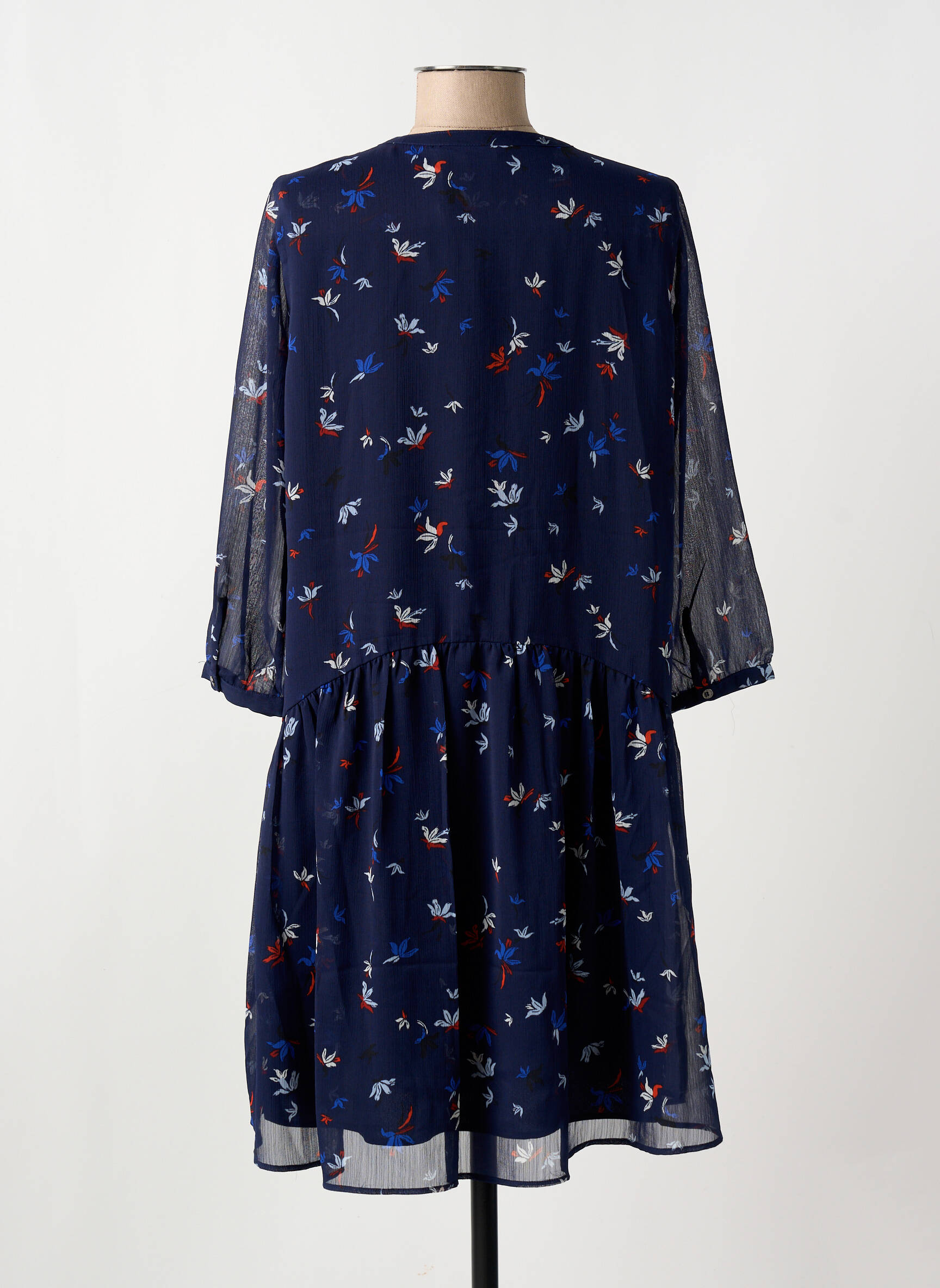 Craquez pour cette robe courte SALSA à prix mini, parfaite pour allier style et économie. Son tissu léger et fluide met en valeur un motif délicat d’oiseaux aux couleurs subtiles sur un fond bleu profond, tandis que sa coupe légèrement évasée avec un joli jeu de transparence sur les manches offre un confort irrésistible au quotidien. Grâce à son allure féminine et intemporelle, vous profitez d’un look tendance sans compromettre votre budget.