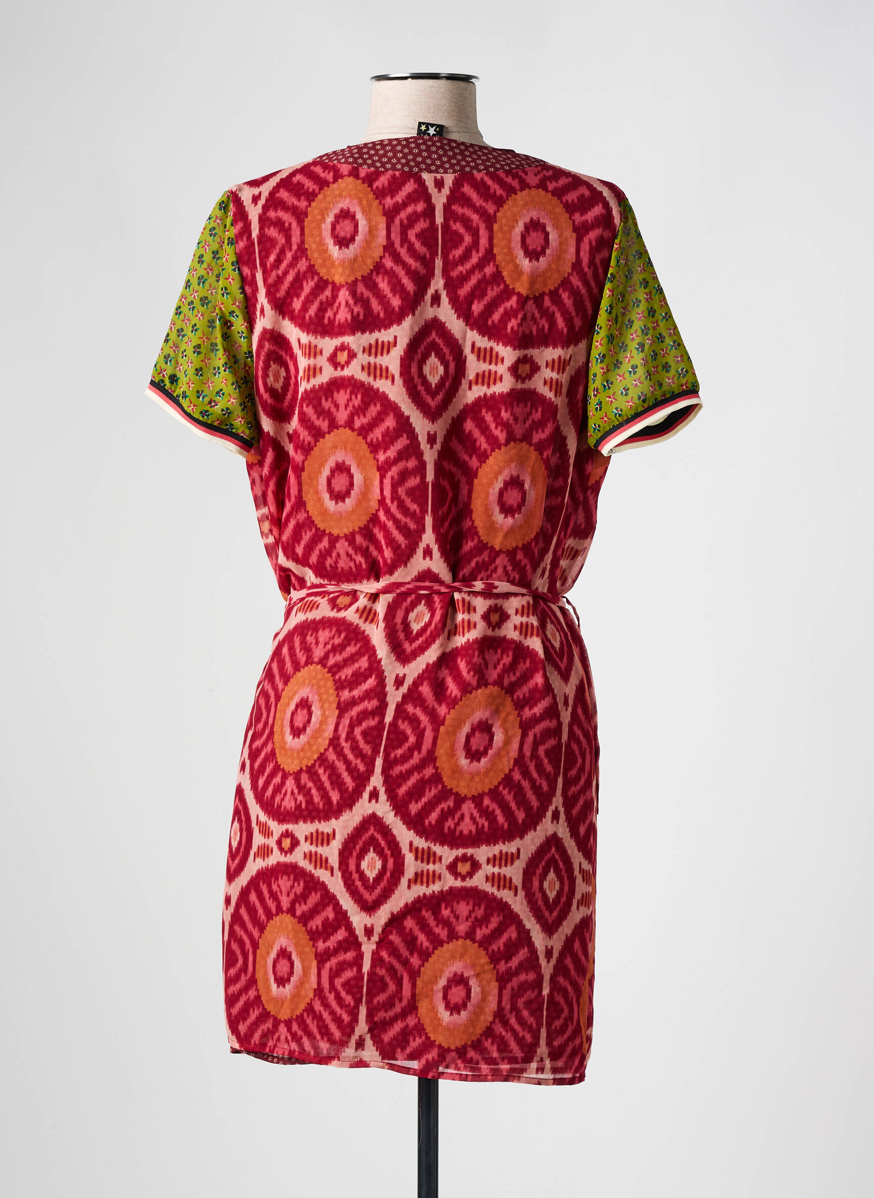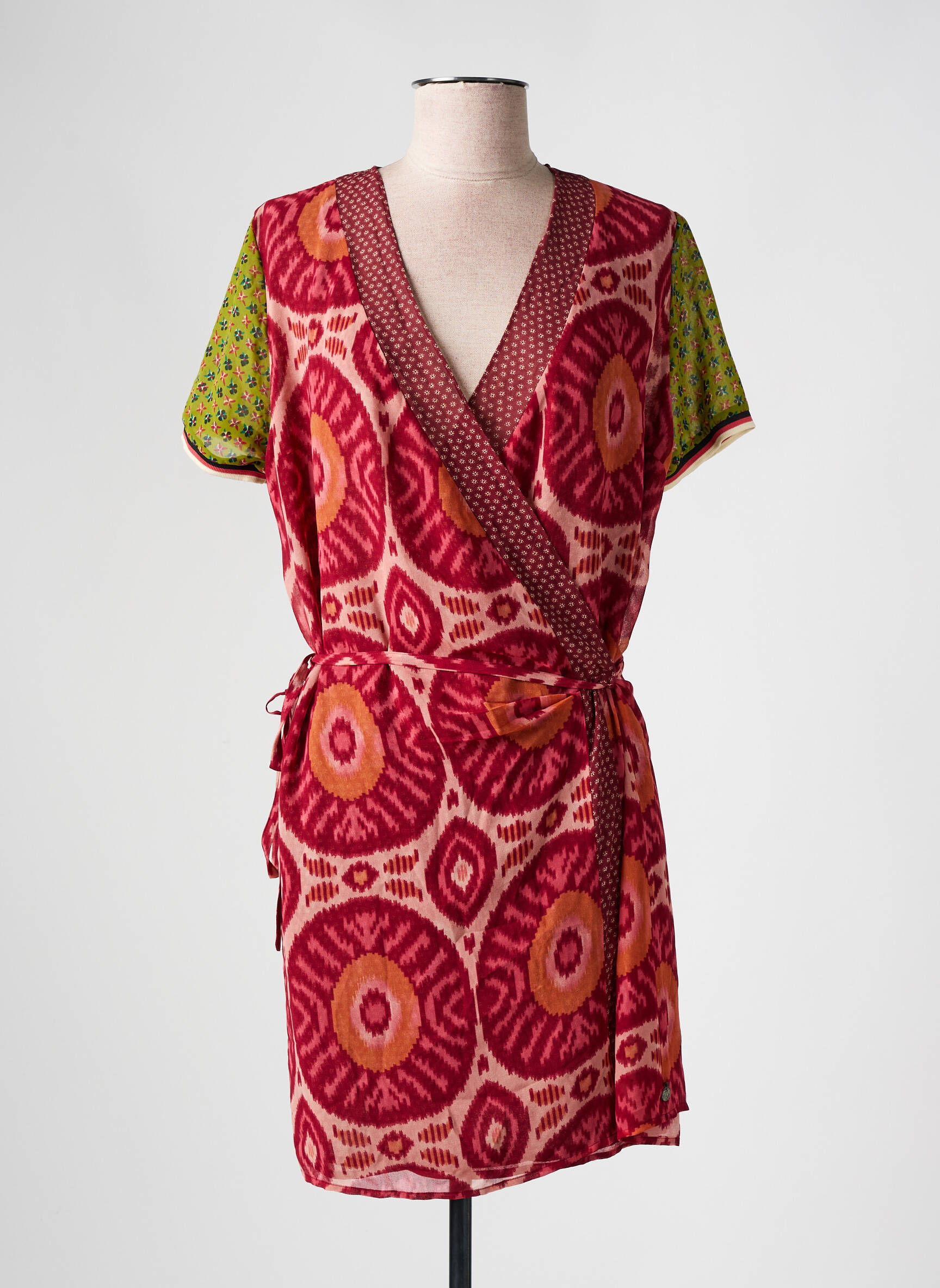 Profitez d’un bon plan pour donner du style à votre garde-robe avec cette robe courte Scotch & Soda pour femme, un modèle à prix doux qui joue sur l’originalité avec son imprimé graphique rouge et rose et ses manches contrastées vertes à motifs, tandis que la coupe portefeuille souligne la silhouette avec élégance et décontraction ; une pièce idéale pour celles qui veulent se démarquer sans se ruiner.