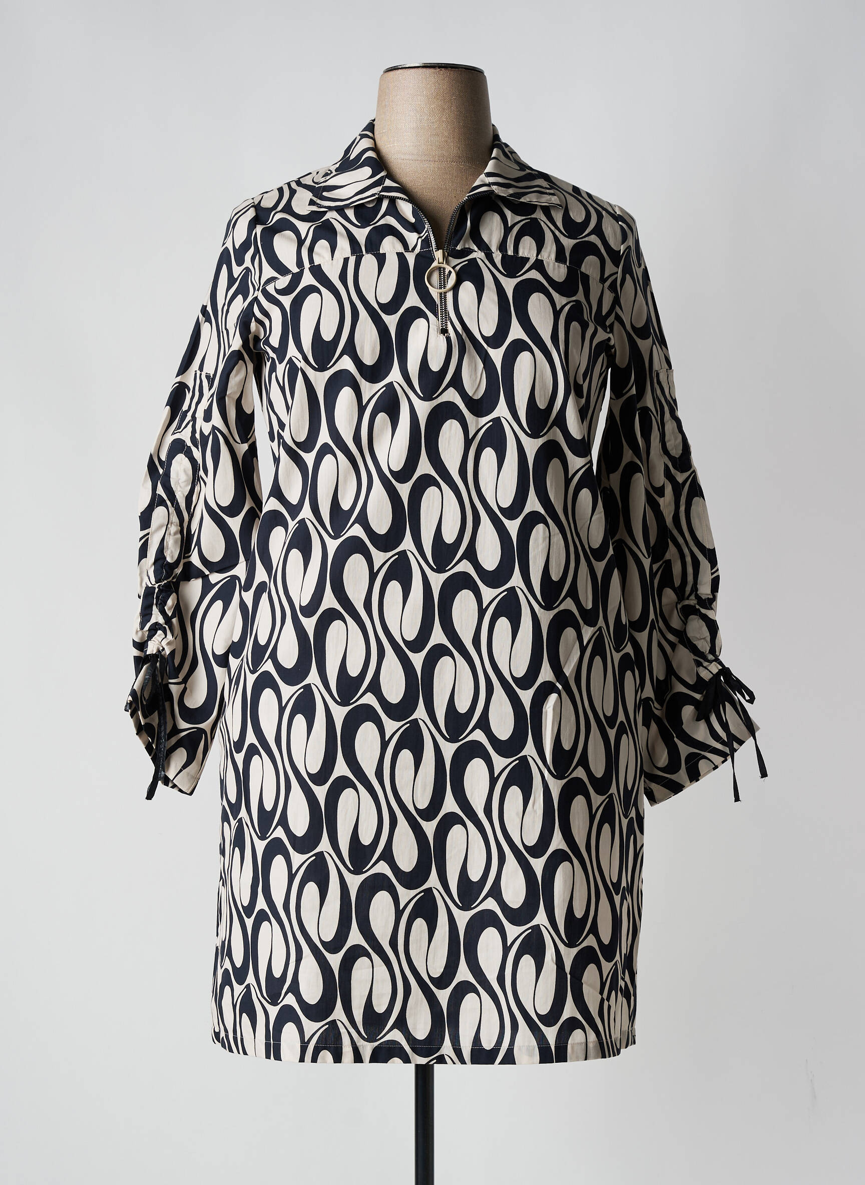 Craquez pour cette robe courte TUZZI à prix mini, parfaite pour dynamiser votre garde-robe sans vous ruiner. Son imprimé graphique aux motifs noirs et crème offre un style unique et tendance, tandis que sa coupe droite légèrement ample vous garantit confort et modernité au quotidien. Les manches longues à détails froncés ajoutent une touche sophistiquée qui fait toute la différence. C’est le bon plan du moment pour une allure raffinée à petit prix, idéale aussi bien pour vos journées en ville que pour vos sorties entre amis.