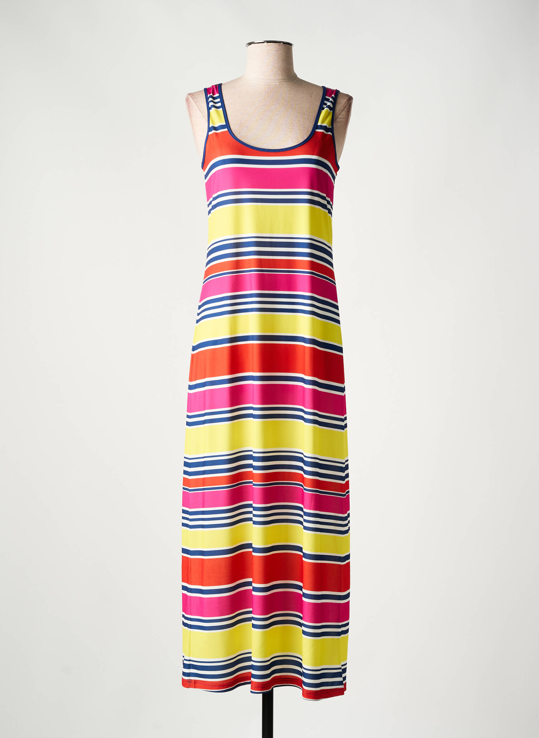 Craquez pour cette robe longue ANTIGEL pour femme à prix mini, parfaite pour profiter des beaux jours sans vous ruiner. Son motif à rayures multicolores apporte une touche de fraîcheur et de gaieté, tandis que sa coupe fluide et sans manches assure un confort optimal toute la journée. C’est le bon plan mode de la saison, idéal pour un look tendance et plein de pep’s à petit prix.