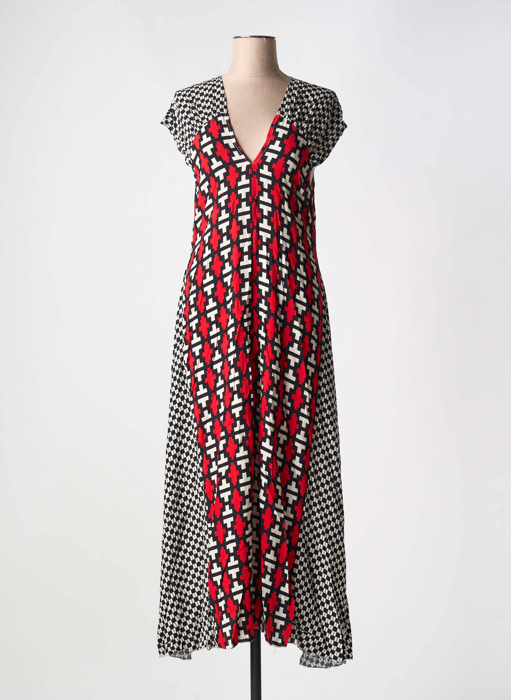 Craquez pour cette robe longue APRIL VINTAGE pour femme, une pièce ultra tendance à prix mini qui promet de sublimer votre silhouette sans vider votre porte-monnaie. Son imprimé graphique mêlant du noir, du blanc et une touche de rouge dynamise instantanément votre look, tandis que sa coupe fluide et son décolleté en V apportent une allure féminine et facile à porter au quotidien comme pour une occasion spéciale. Un vrai bon plan pour renouveler votre garde-robe sans compromis sur le style ni sur le budget.