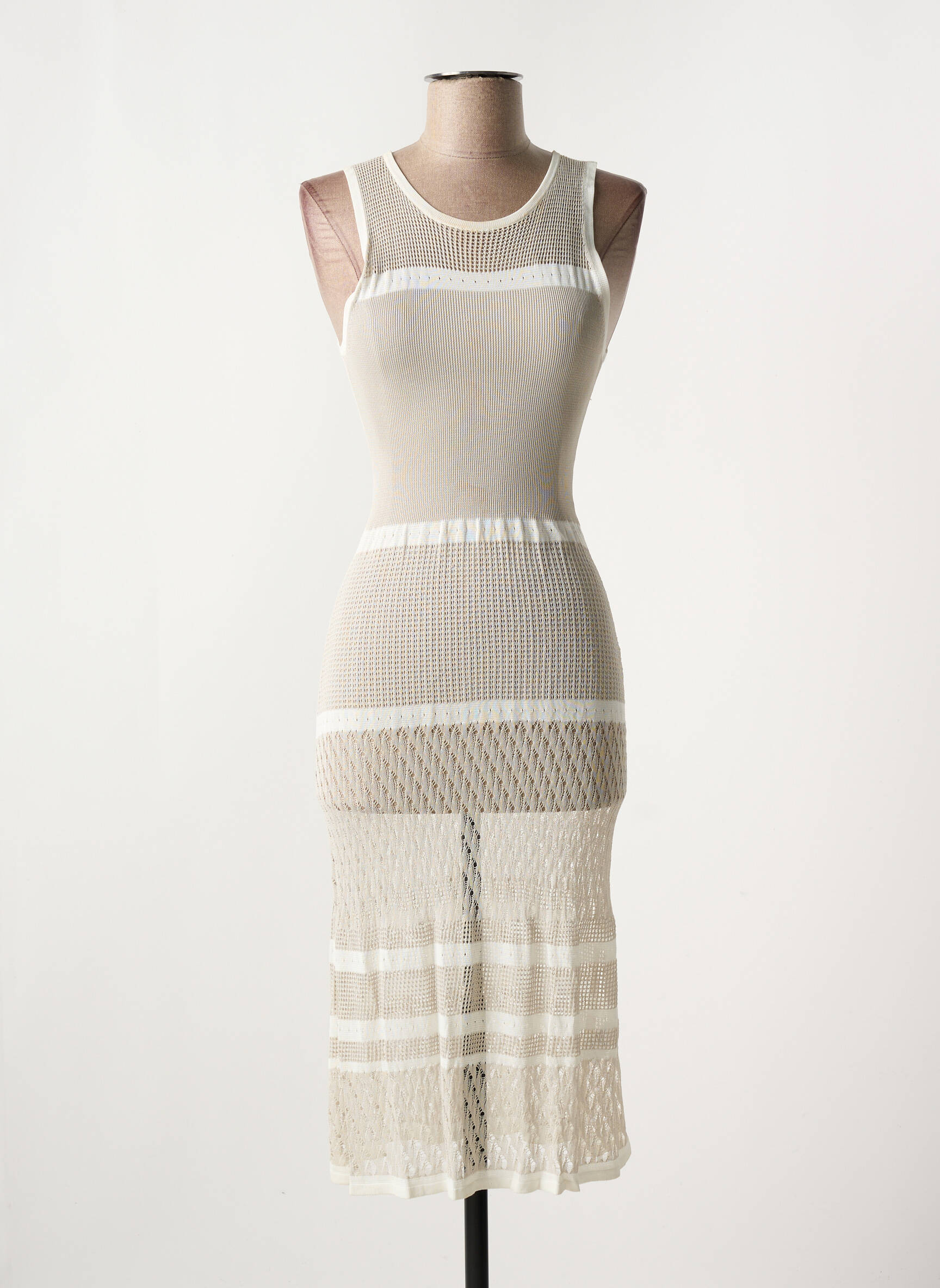 Profitez d’un bon plan exceptionnel avec cette robe longue de la marque BLEU BLANC ROUGE, parfaite pour allier élégance et style à petit prix. Sa matière effet maille ajourée et ses détails de bandes contrastées offrent une allure moderne et féminine, idéale pour sublimer toutes vos occasions estivales sans compromettre votre budget.