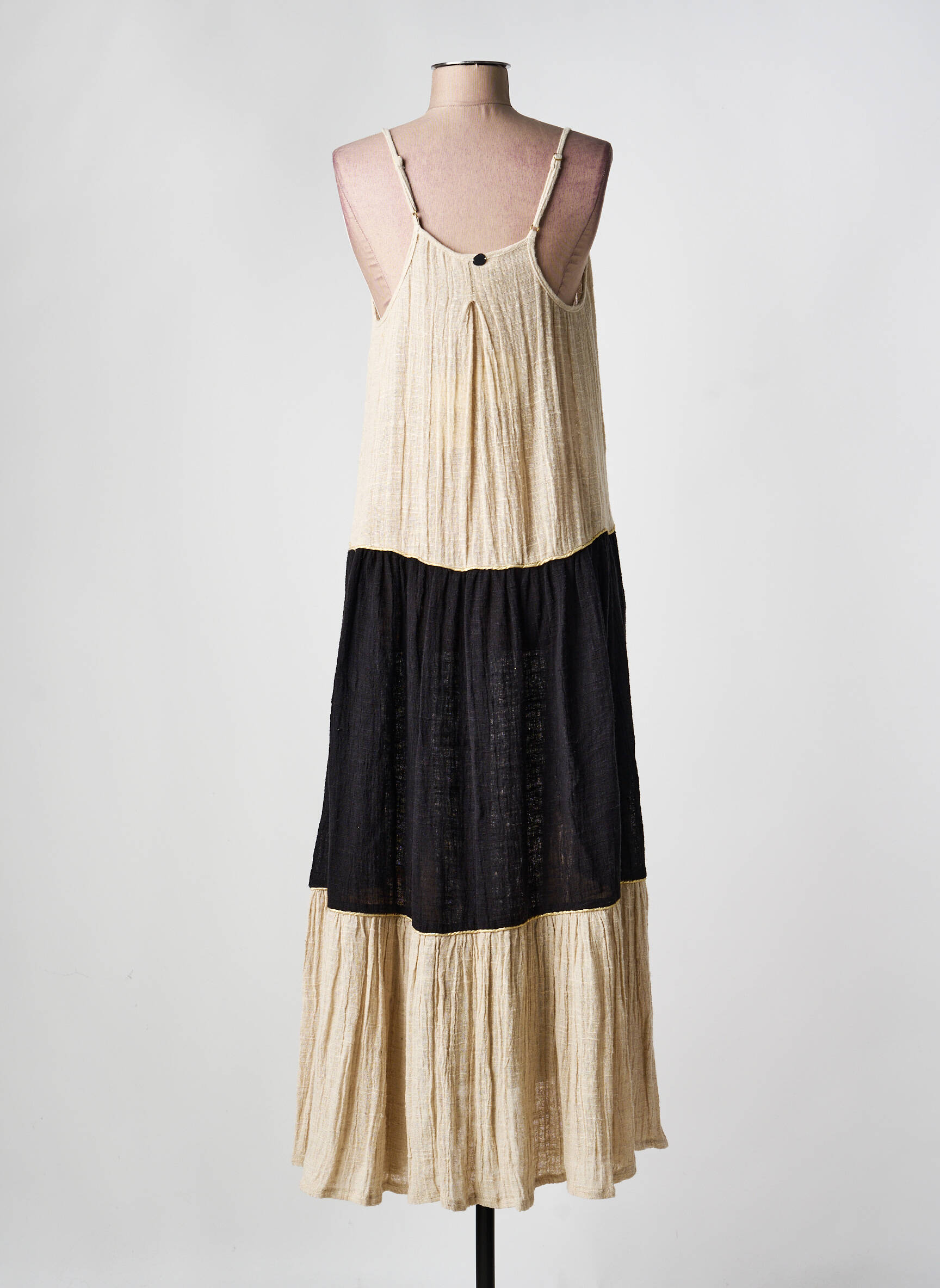 Profitez d’un bon plan irrésistible avec cette robe longue BSB pour femme, idéale pour un look décontracté chic à petit prix. Son style fluide met en valeur une silhouette élégante grâce à un jeu de panneaux noirs et beiges qui apportent une touche moderne et graphique. Les fines bretelles dévoilent les épaules avec délicatesse tandis que le tissu léger assure un confort optimal tout au long de la journée. Cette robe est parfaite pour valoriser votre dressing sans vous ruiner, tout en affichant une allure sophistiquée et contemporaine.