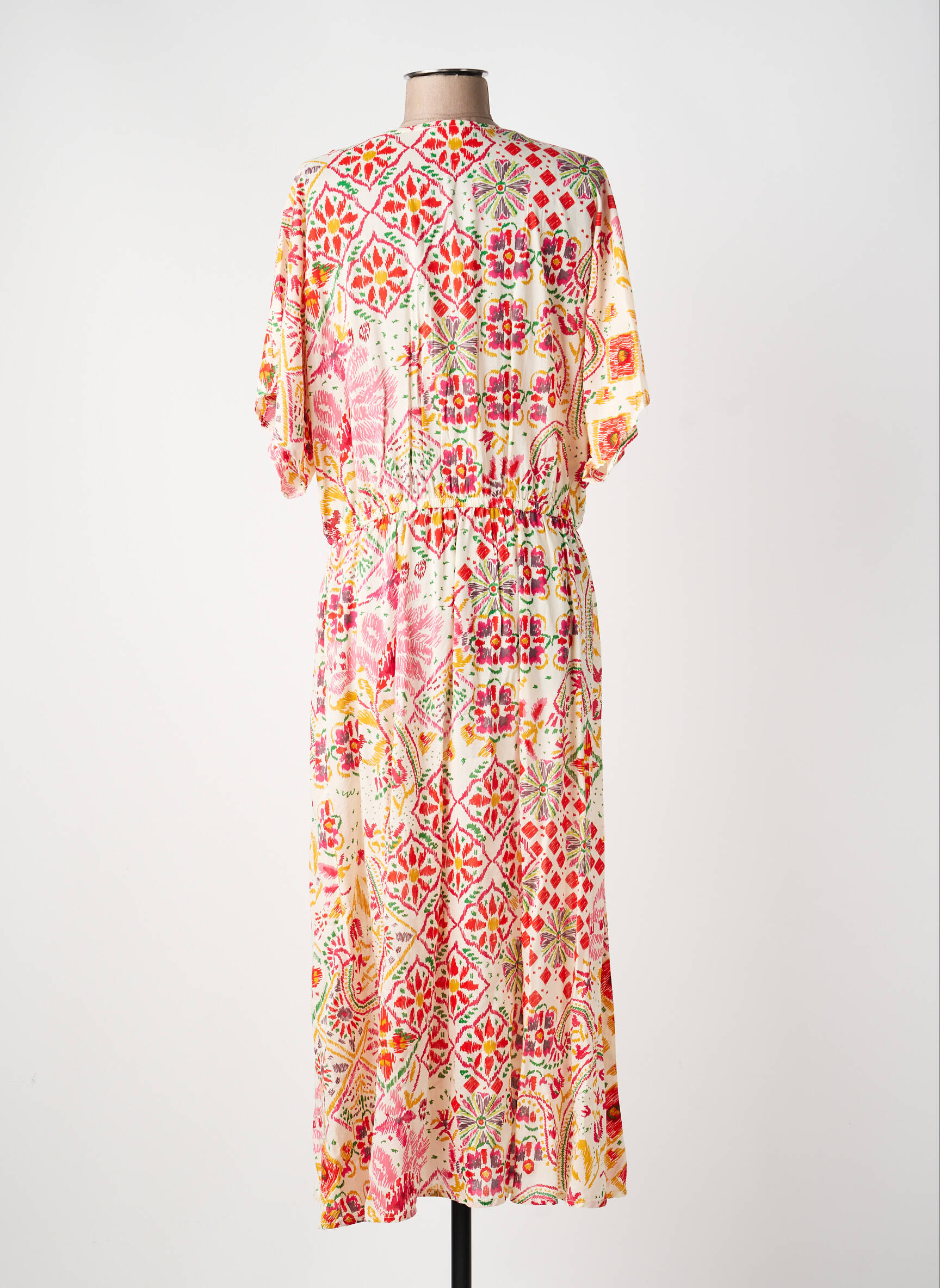 Profitez d’un véritable bon plan mode avec cette robe longue C’EST BEAU LA VIE, idéale pour apporter une touche de fraîcheur et de gaieté à votre dressing sans vous ruiner. Sa coupe fluide et confortable met en valeur une belle palette de motifs colorés d’inspiration ethnique et bohème, parfaite pour illuminer votre allure au quotidien ou en vacances. L’encolure en V et les manches légèrement amples ajoutent une note féminine et élégante, tout en vous assurant une liberté de mouvement optimale. Ce modèle est une occasion à saisir pour adopter un look tendance à prix déstocké.