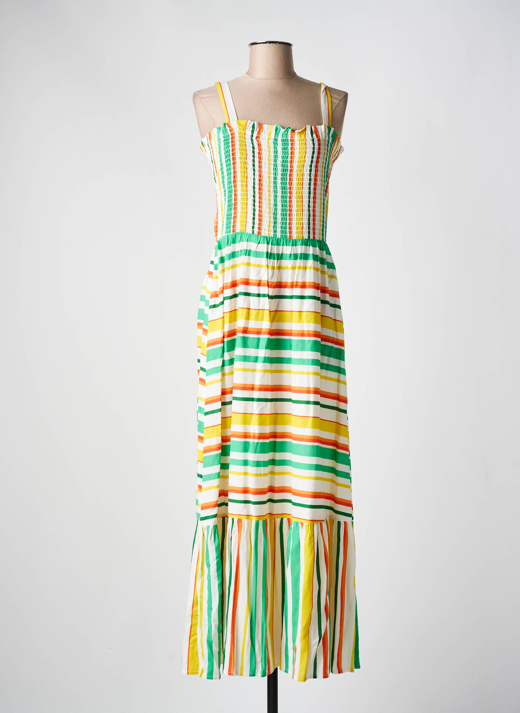 Craquez pour cette robe longue C'EST BEAU LA VIE, parfaite pour profiter du soleil à petit prix tout en restant stylée. Ses fines bretelles et son bustier smocké mettent en valeur la silhouette avec élégance, tandis que ses rayures colorées apportent une touche de gaieté et de fraîcheur idéale pour la saison estivale. C’est le bon plan à saisir pour renouveler votre garde-robe sans vous ruiner, alliant confort et esprit décontracté en un seul achat malin.